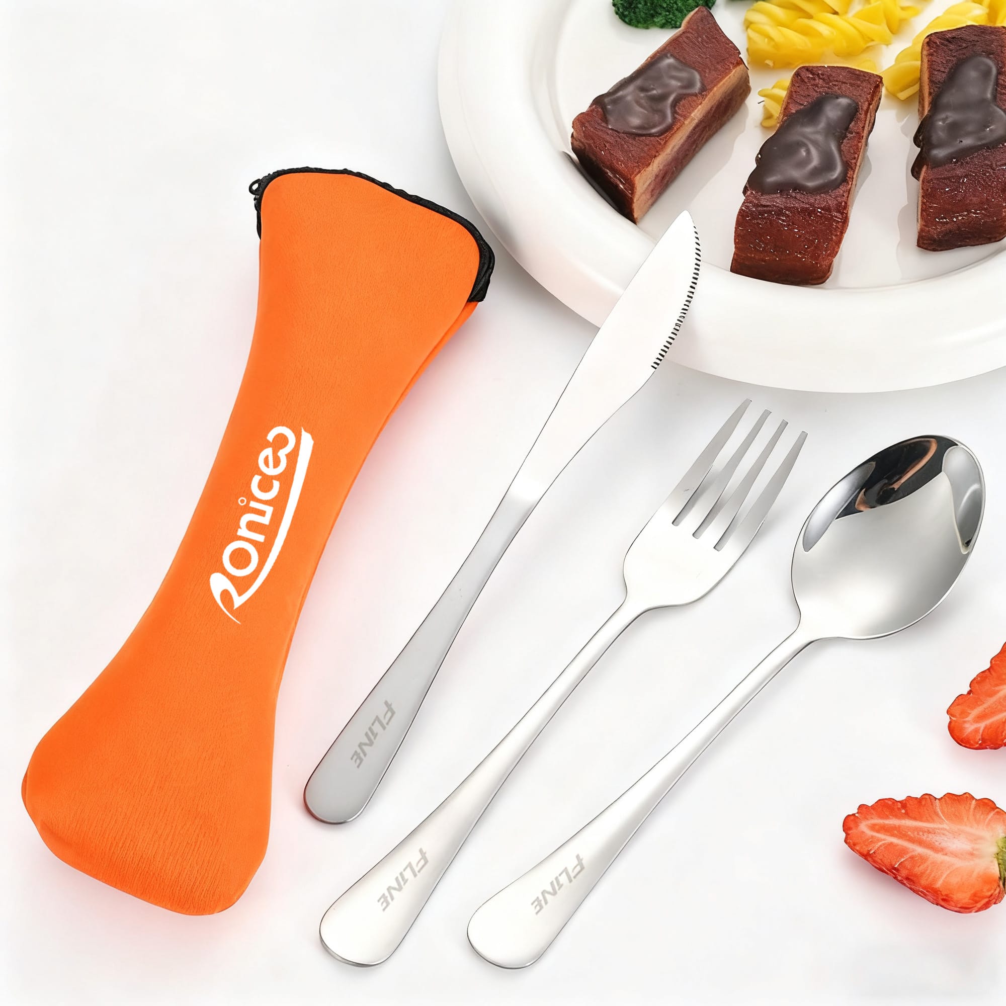 Useful all in one travel utensils set is supplied in stainless steel, and are compact and environmentally friendly. It is a great promotional giveaway when travelling on the road on business that includes a pair of chopsticks or a knife, a small spoon and a fork, which includes a neoprene pouch to keep all utensils neatly and can be printed with your company name and logo.
