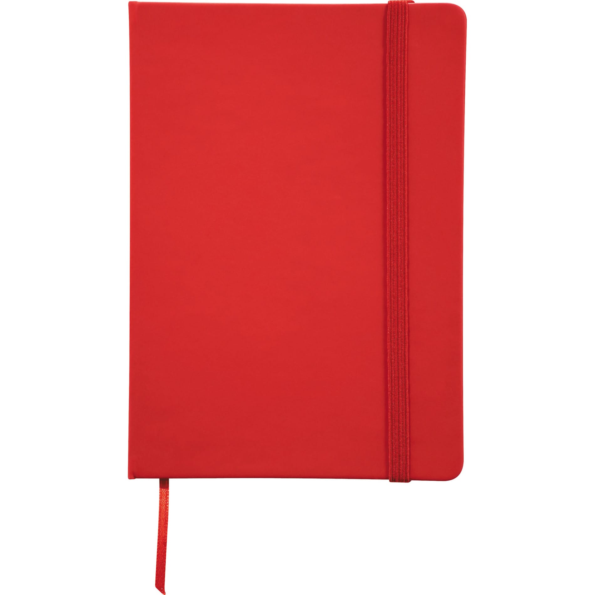 Elastic closure notebook with matching colour ribbon bookmark. 80 ruled page notebook.