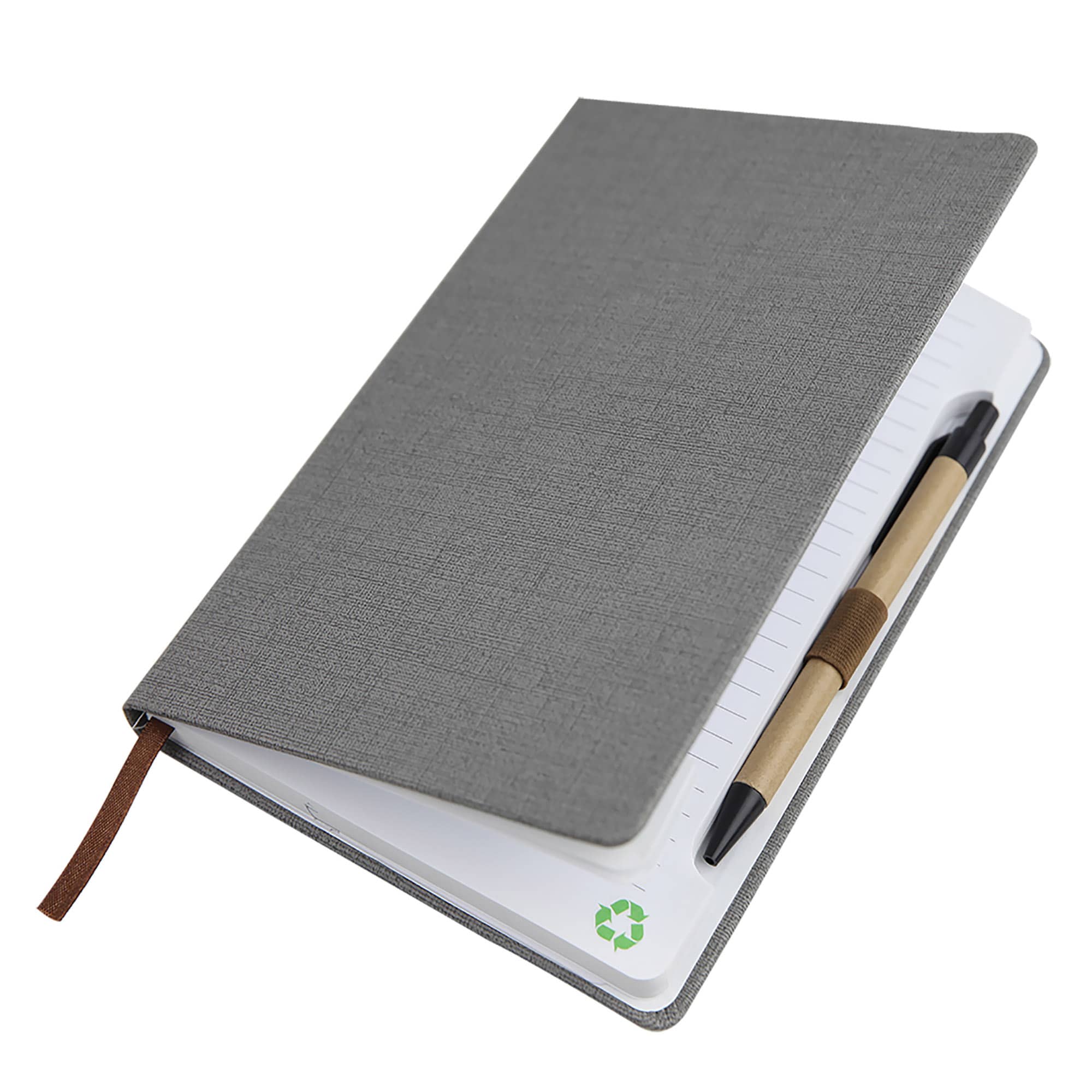 Stylish A5 size textured PU cover notebook brown elastic retaining closure holds a recyclable paper pen and matching ribbon page marker. 80 leaves 160 pages of 70gsm lined white paper. A great corporate notebook makes a brilliant gift for your favourite employee or student.