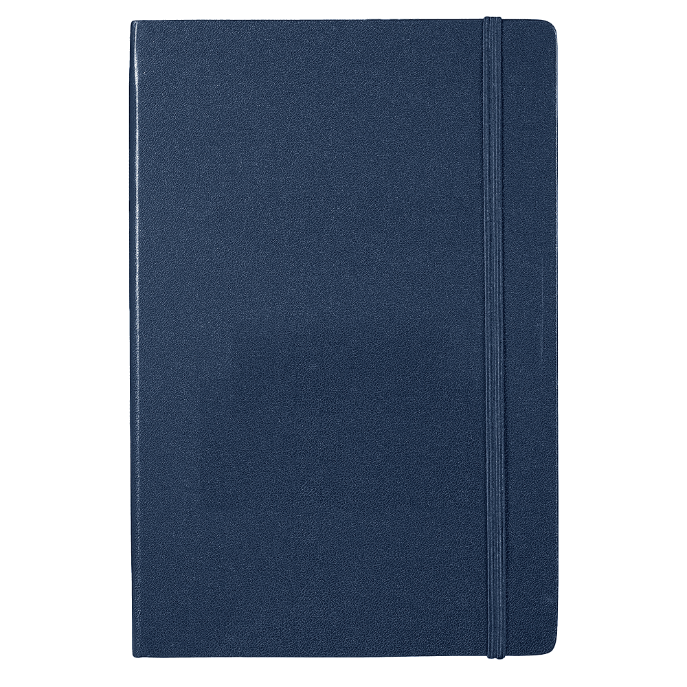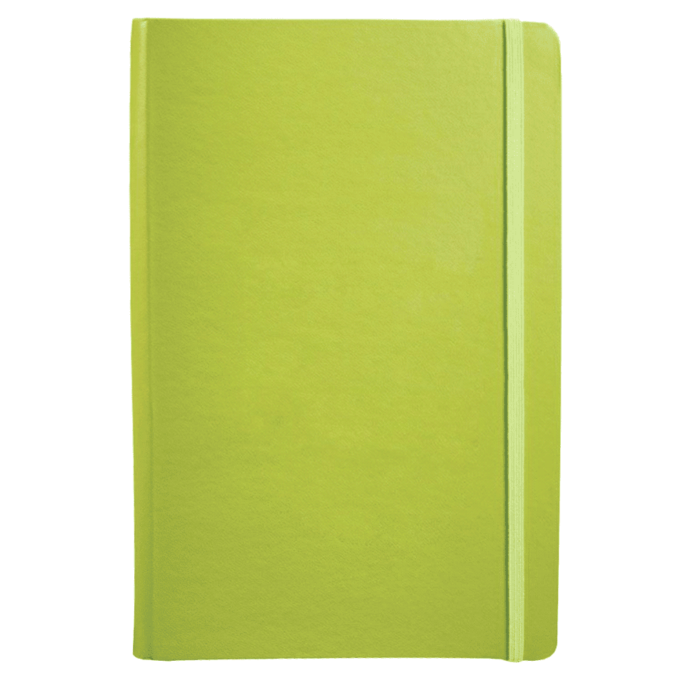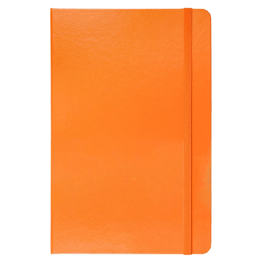Hard cover, bound journal. Built-in elastic closure and ribbon marker. Includes 80 sheets of lined paper off-white paper.