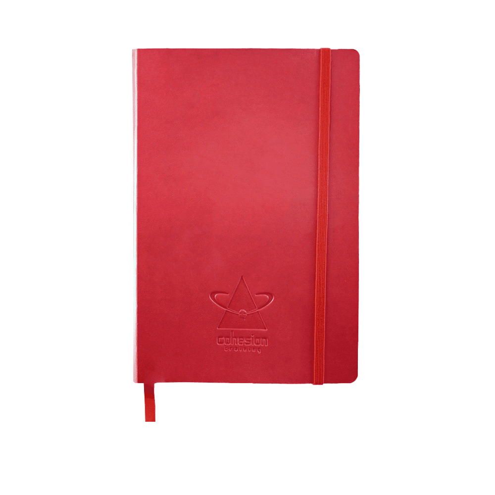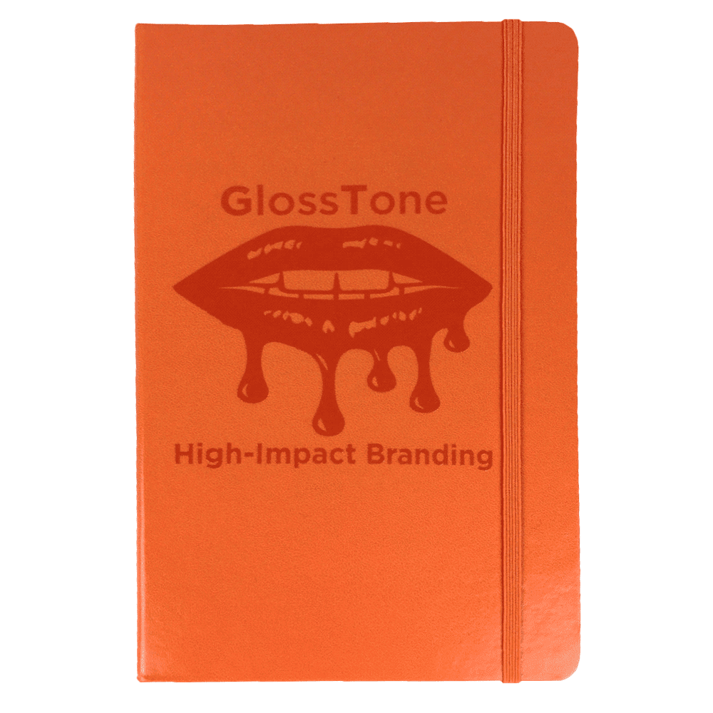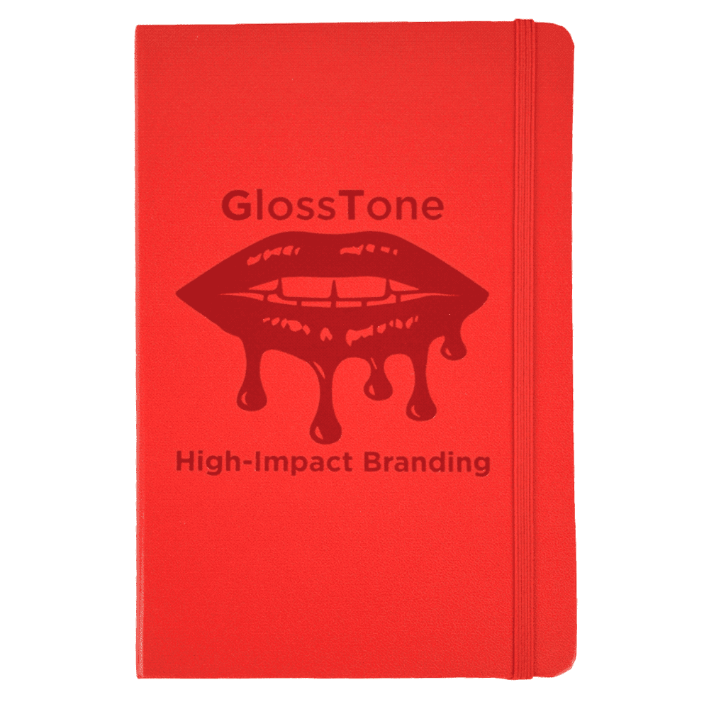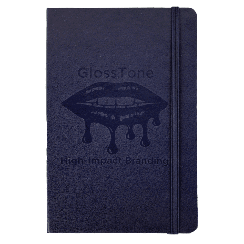 Hard cover, bound journal. Built-in elastic closure and ribbon marker. Includes 80 sheets of lined paper off-white paper.