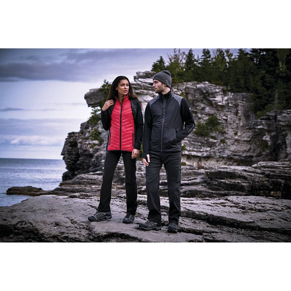 With its distinctive quilted body, brushed back knit sleeves and body panels, the Banff hybrid insulated jacket is an unique combination of style and comfort. Offering insulated warmth and a water repellent finish for work or play! It’s also got brushed polyester inner zip flap, chin guard and pocket lining for the added touch of cozy. Available in bold colour-block or monochrome, the Banff has a distinctive retail look that will set any brand apart.