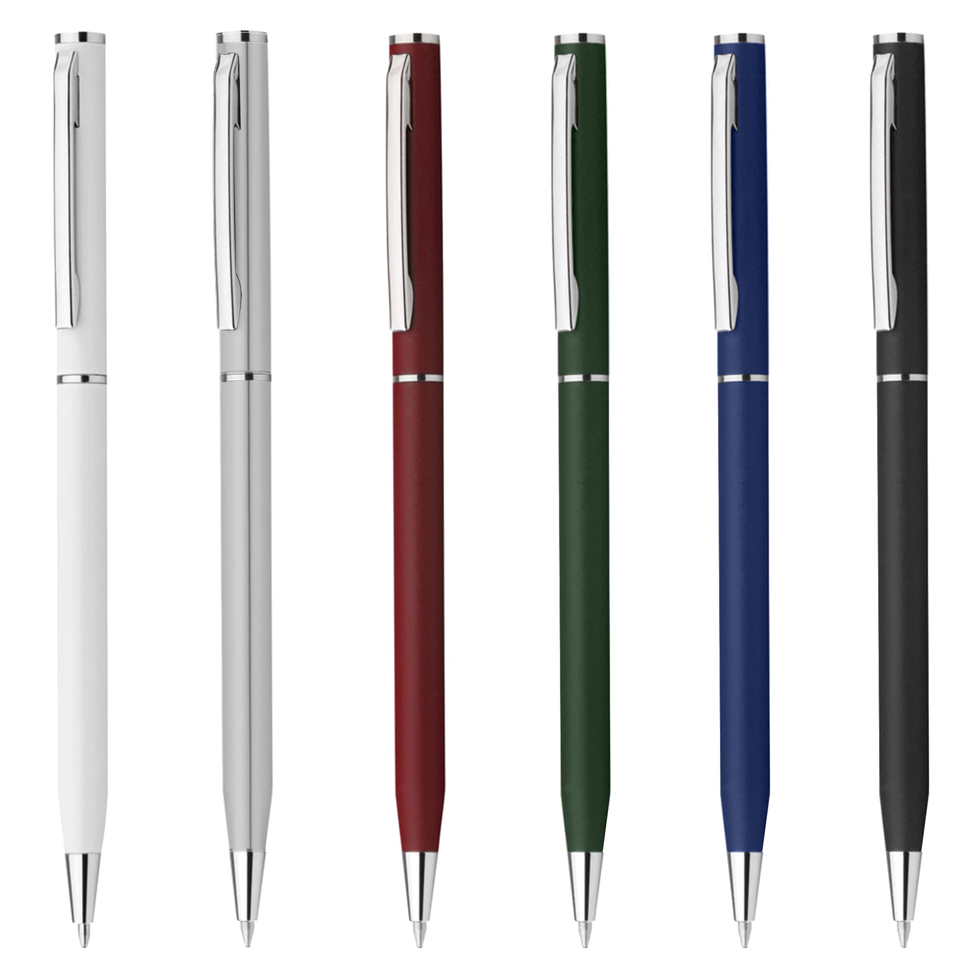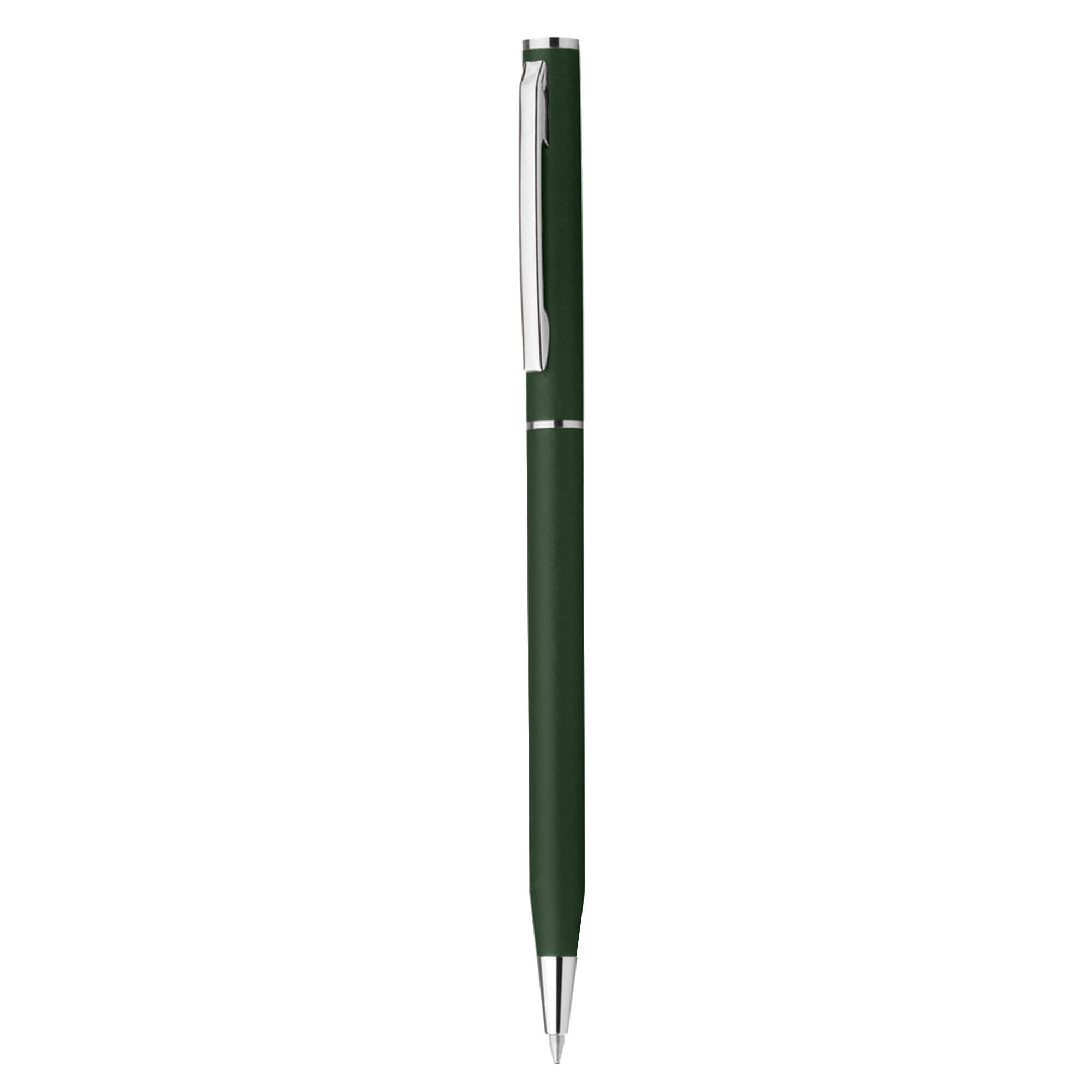 Slim twist action plastic hotel pen solid plastic barrel with shiny silver chrome accents high quality German manufactured black ink refill 1200 meters writing distance tungsten carbide ball provides you with quality writing. A perfect budget plastic pen for hotel and motel.