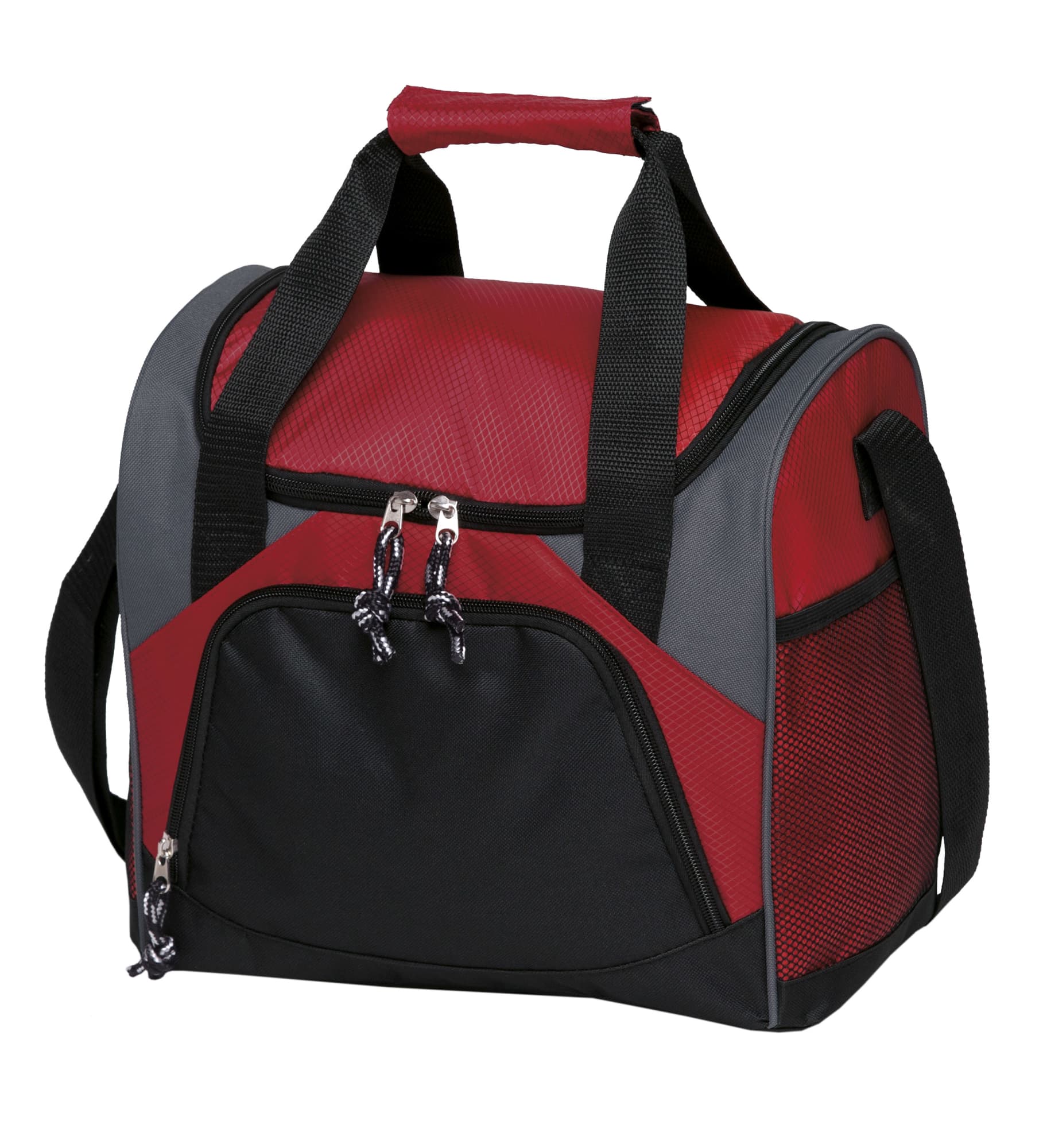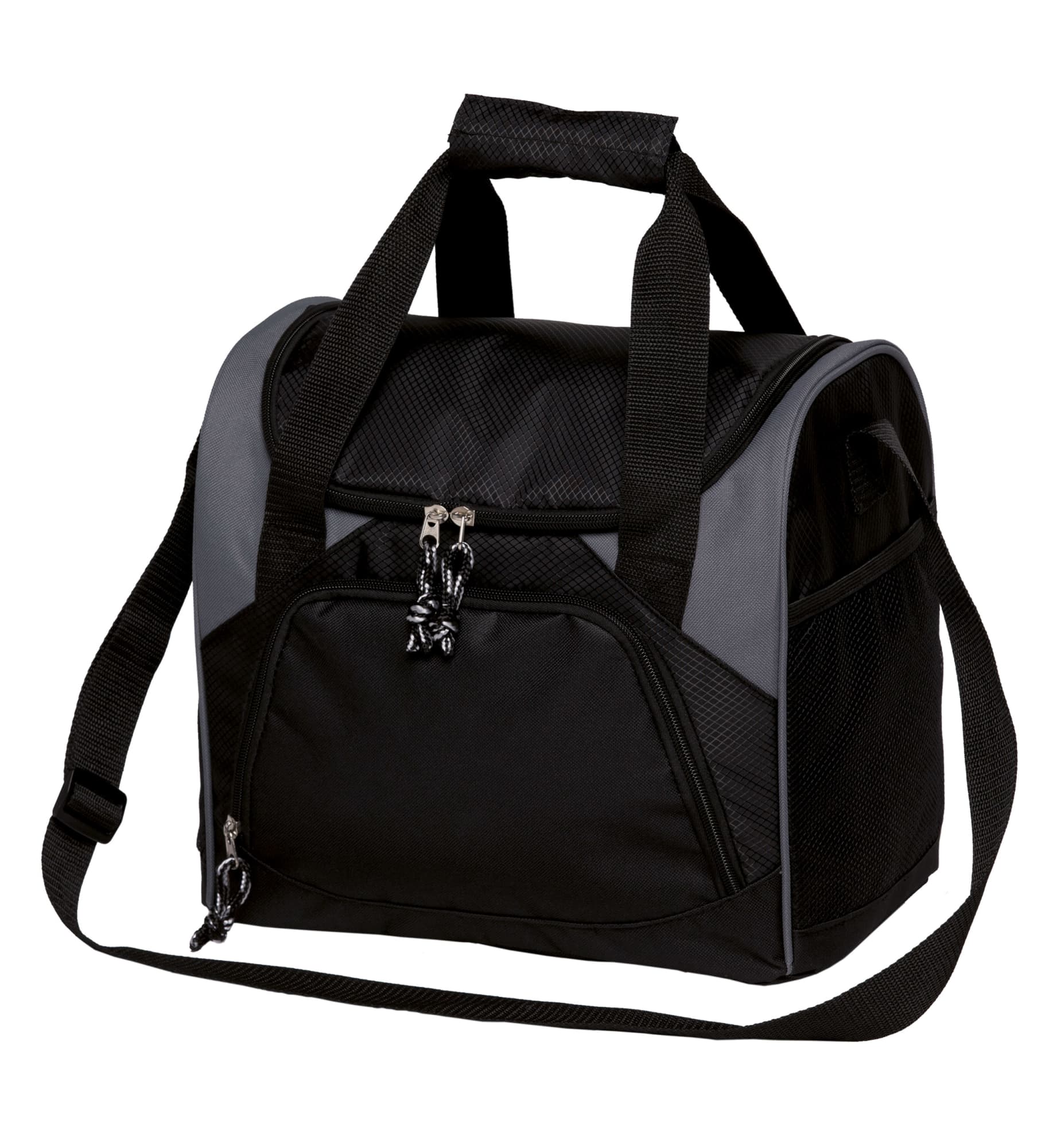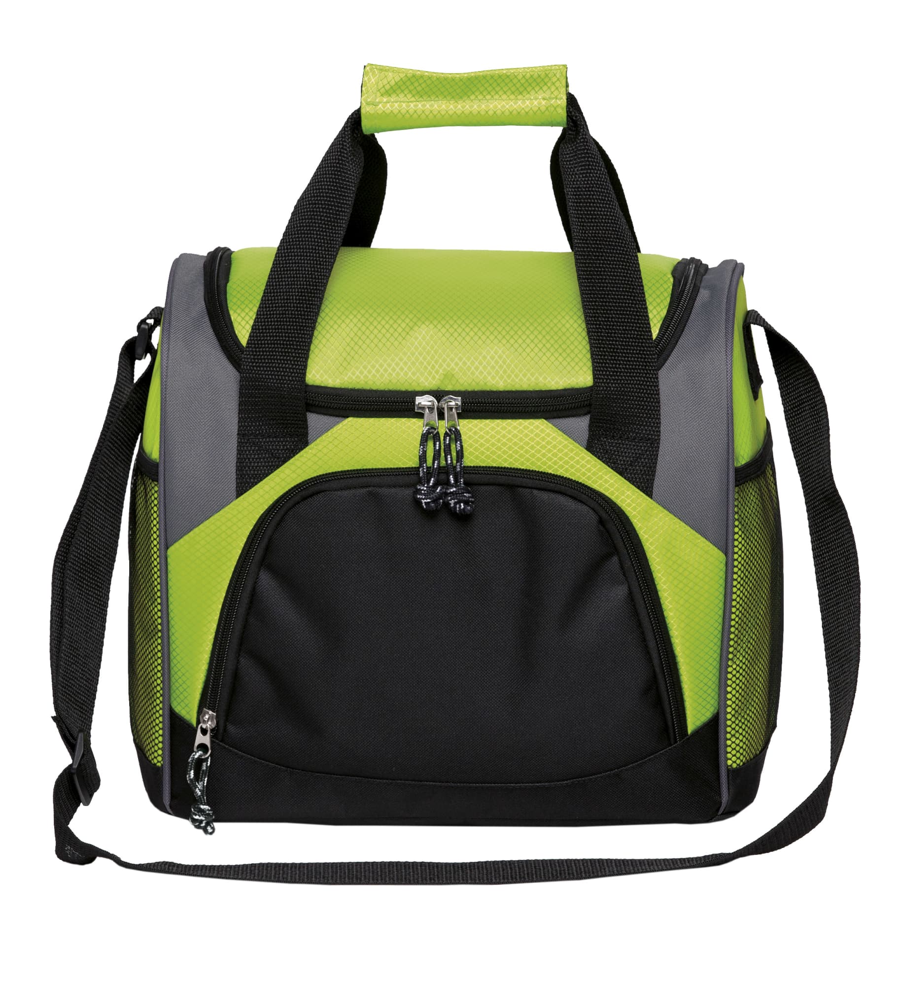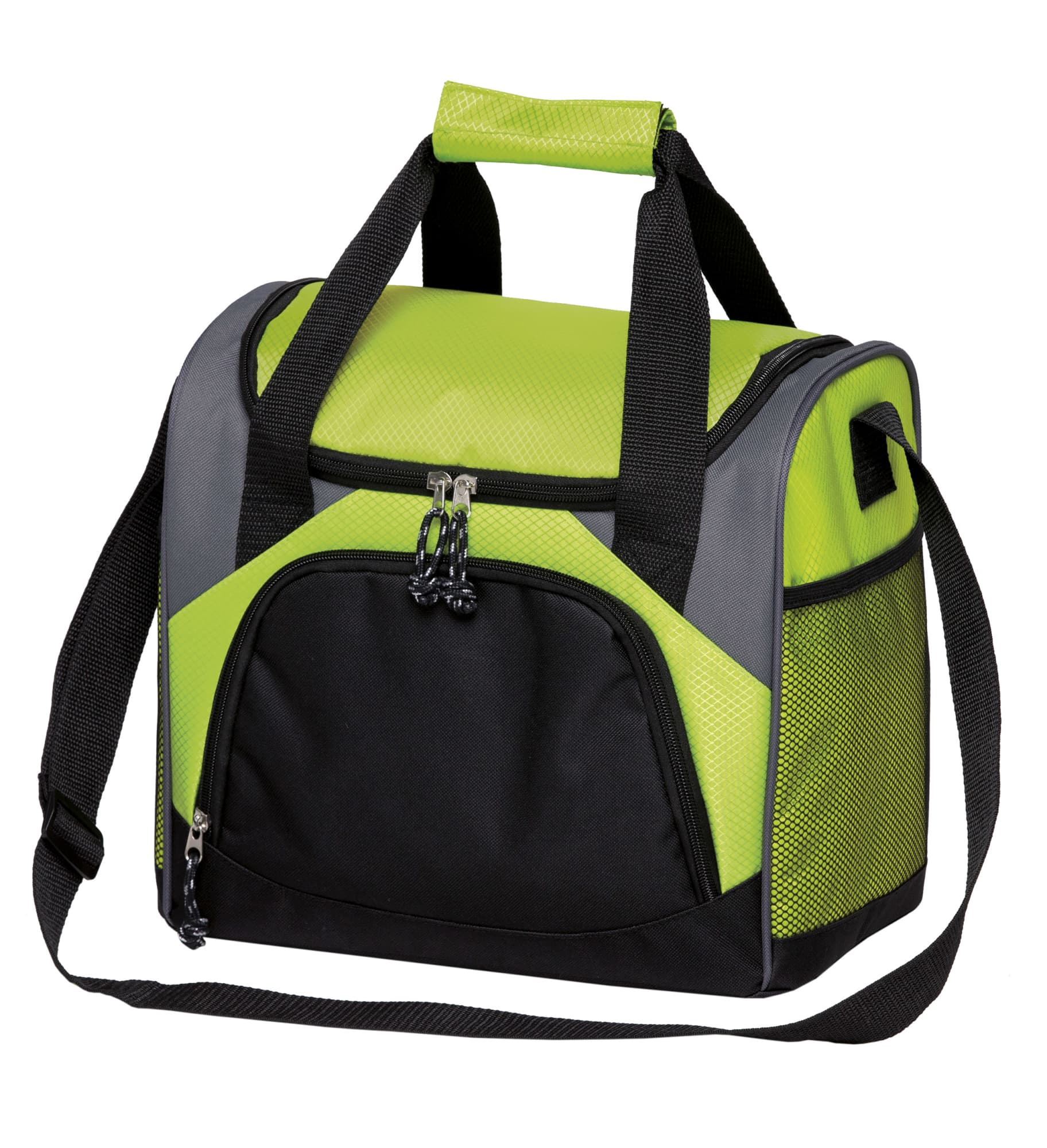 420D diamond weave ripstop polyester and 600D polyester both with PVC backing|Insulated zippered main cooler compartment with PEVA lining|Dual side external mesh drink bottle/accessory pocket|Front zippered accessory pocket|Adjustable shoulder strap|Velcro wrap carry handle for comfortable grip|Capacity: 18 Litres