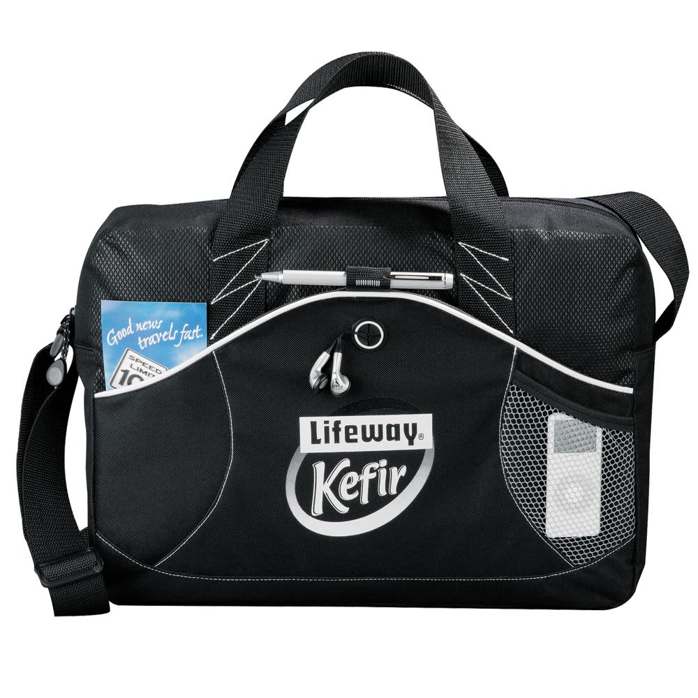 | Features | Includes front pen loop and mesh water bottle pocket. Front earbud port with easy access. Adjustable shoulder strap and 2 carry handles. Pen, mobile phone, iPod and business card holder on the back, earphones not included. Main compartment capacity is approximately 11 litres. |
