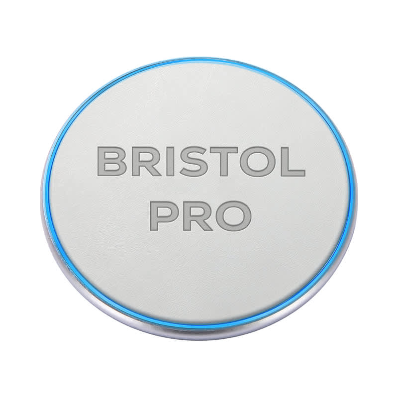 The Bristol Pro 15W offers fast and efficient wireless charging, including foreign object detection, overcurrent protection, and temperature protection. It has a soft PU leather charge plate, an ultra-slim aluminium case, non-slip feet and a pulsating charge ring. This desktop charger includes a smart IC, making it compatible with any smartphone or device that meets the Qi wireless charging standard. It is also backward compatible. The packaging includes a Type-C charging cable and a user manual. Material: Aluminium, PU Leather.
