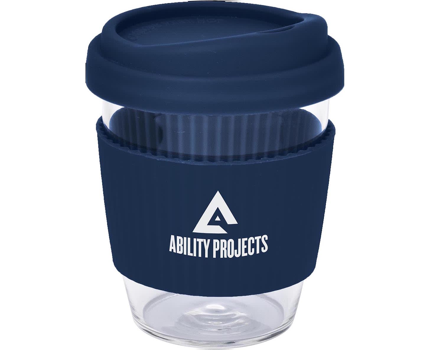 For a true café experience, make sure you choose a genuine ‘Café Mug’. Made from quality Borosilicate Glass (which protects the mug from damage due to sudden temperature change), these eco-friendly re-usable mugs are a great alternative to the paper cup. Featuring a food grade silicone lid as well as a heat resistant ridged silicone band specially designed for safe handling. Available in 2 sizes, medium (designed to fit most office coffee machines) and large and with a choice of black, navy, red or green trim. Do not place printed bands in a dishwasher.
