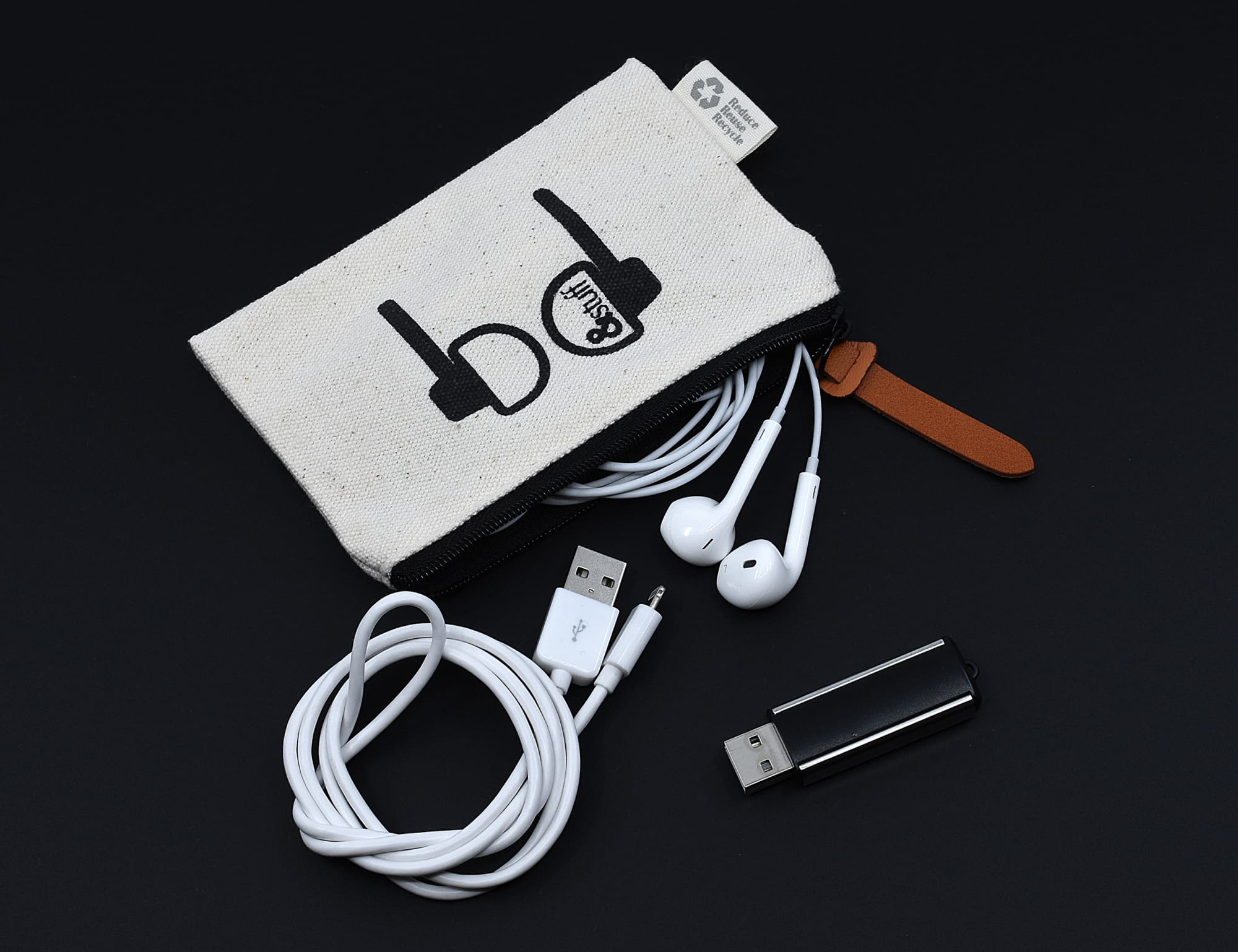 Calico Earphone Pouch is ideal for keeping all your mini-tech accessories safe and secure. Ideal for earphones, charging cables, power bank and flash drives. Your logo can be printed or debossed on one side of the pouch with our &Stuff icon printed on the reverse side.