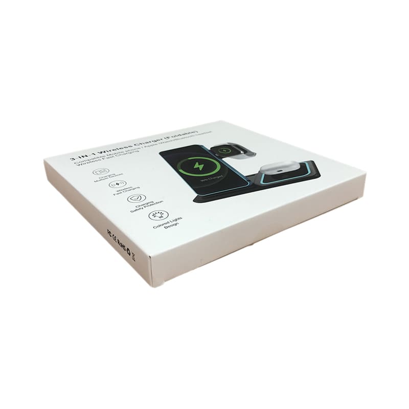 | Specifications | Wireless Charger Type-C Input: DC 5V/3A, DC 9V/2A, Phone Wireless Output Power: 15W / 10W / 7.5W / 5W. TWS Wireless Output Power: 3W. iWatch Wireless Output Power: 2.5W, Charge Coils: 4, Output Efficiency: ≥ 72%, Transmission Range: ≤ 10 mm, Frequency Range: 110 KHz - 205 KHz. Charge Cable: 3 Amp. |