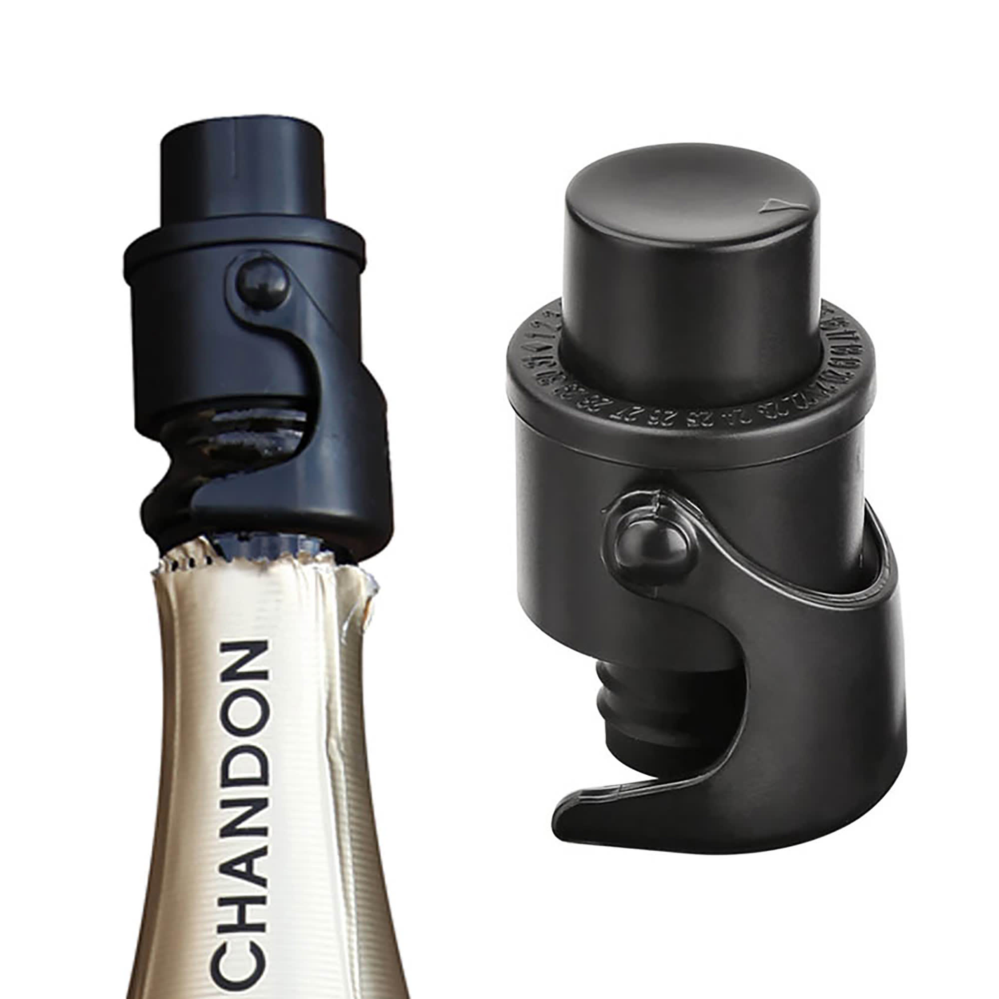 Plastic push-type vacuum champagne stopper which is manufactured from ABS plastic and food grade silica gel. Pump and stopper in one preserves the fizz turn the top to mark the date.