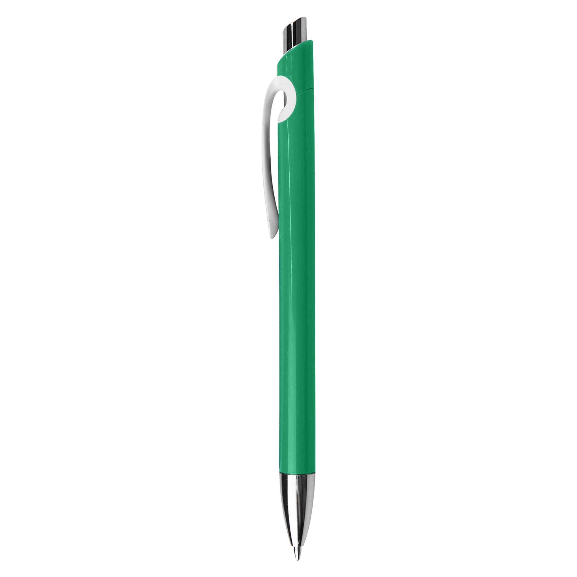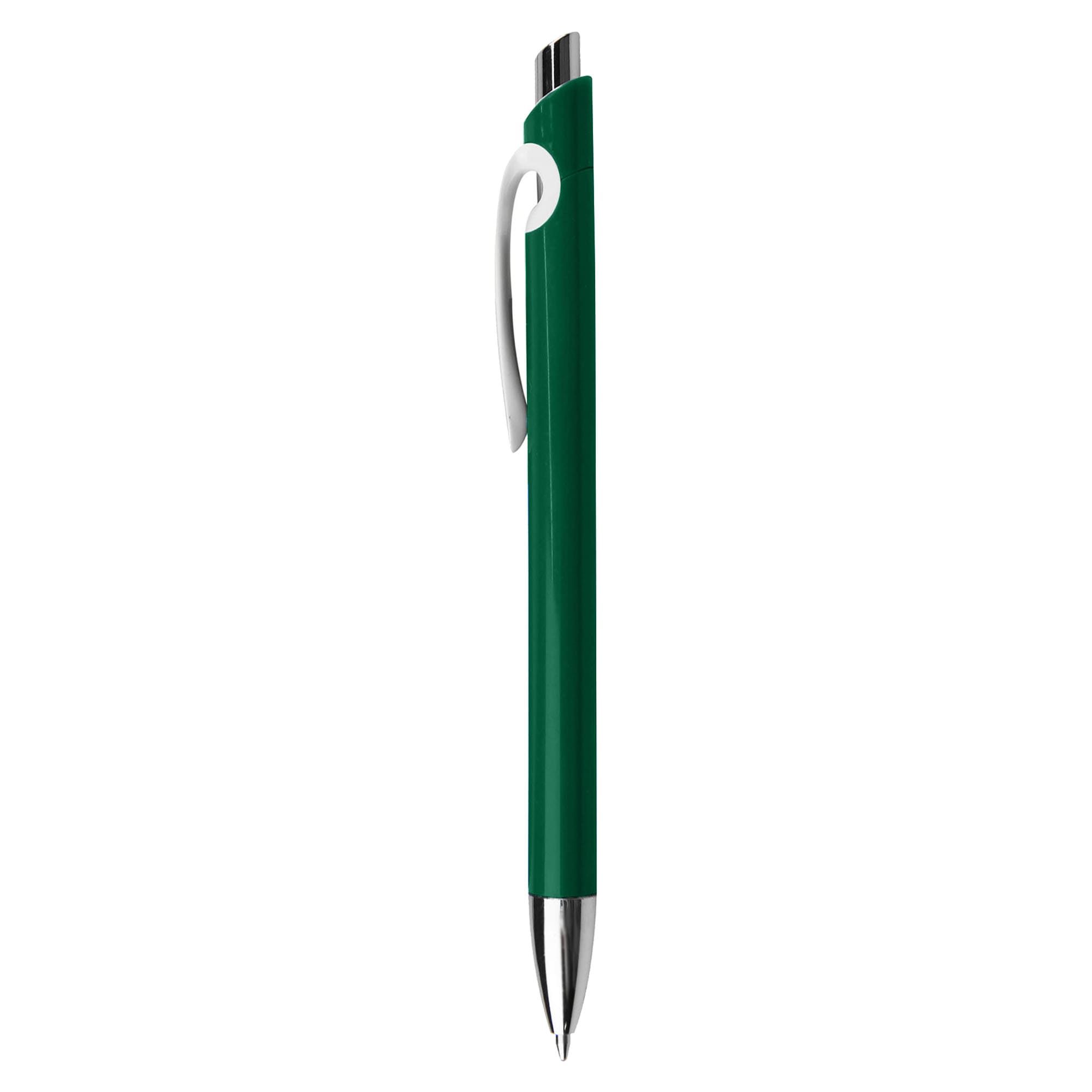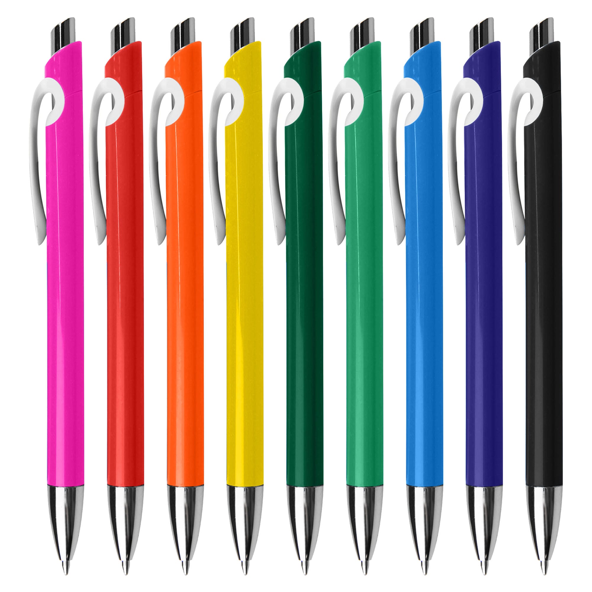 A special hook shape design clip solid plastic pen with shiny chrome tip retractable action has a high quality German manufactured black ink refill 1200 meters writing distance tungsten carbide ball which brings you the better writing quality.