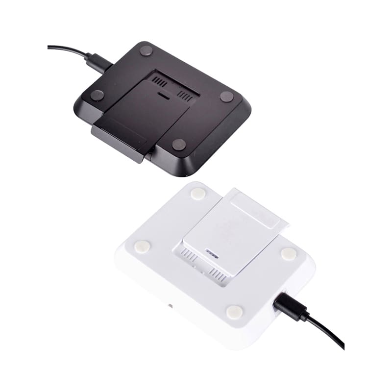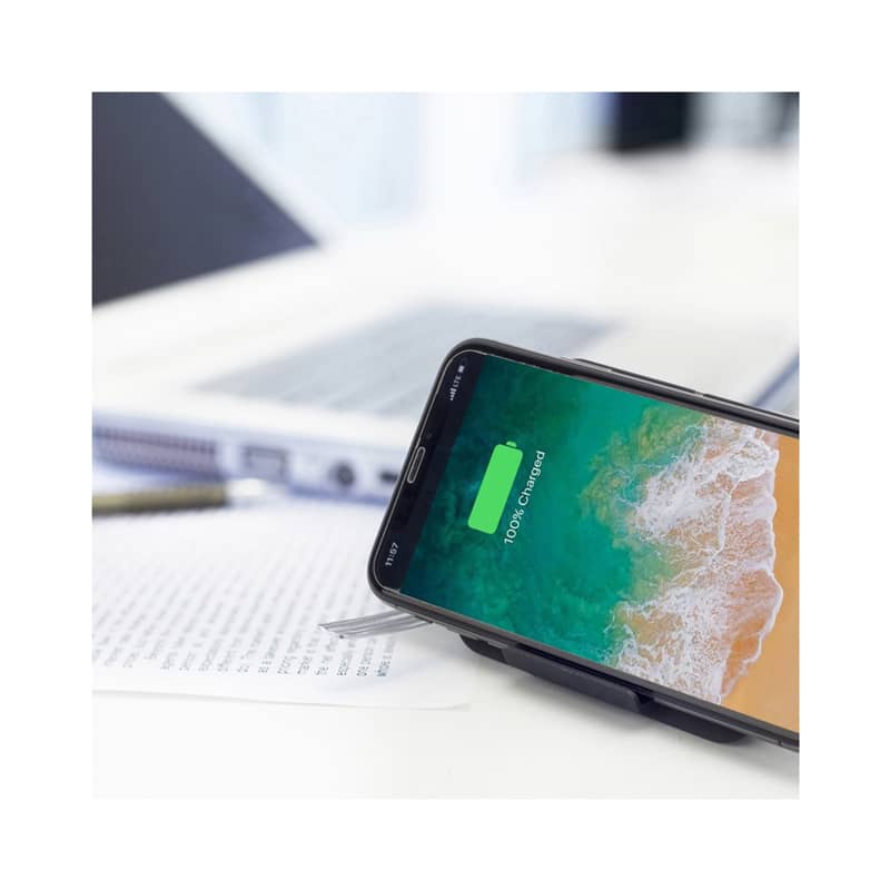 The Clifton is compact, portable and easily transforms from charge plate to charging stand in moments. Ideal for use in the office or on tour the Clifton features built-in sensor circuitry that protects the charging pad from overheating; FOD (Foreign Object Protection), OCP (Over Current Protection) and DPL (Dynamic Power Limiting). Simply connect the charger to any 5 Volt (DC) power source and place your phone onto the stand to start charging. Compatible with any smart phone meeting the Qi wireless charging standard (e.g. iPhone 8, iPhone X, Samsung S8). Includes micro USB charge cable and user manual. Material: ABS.