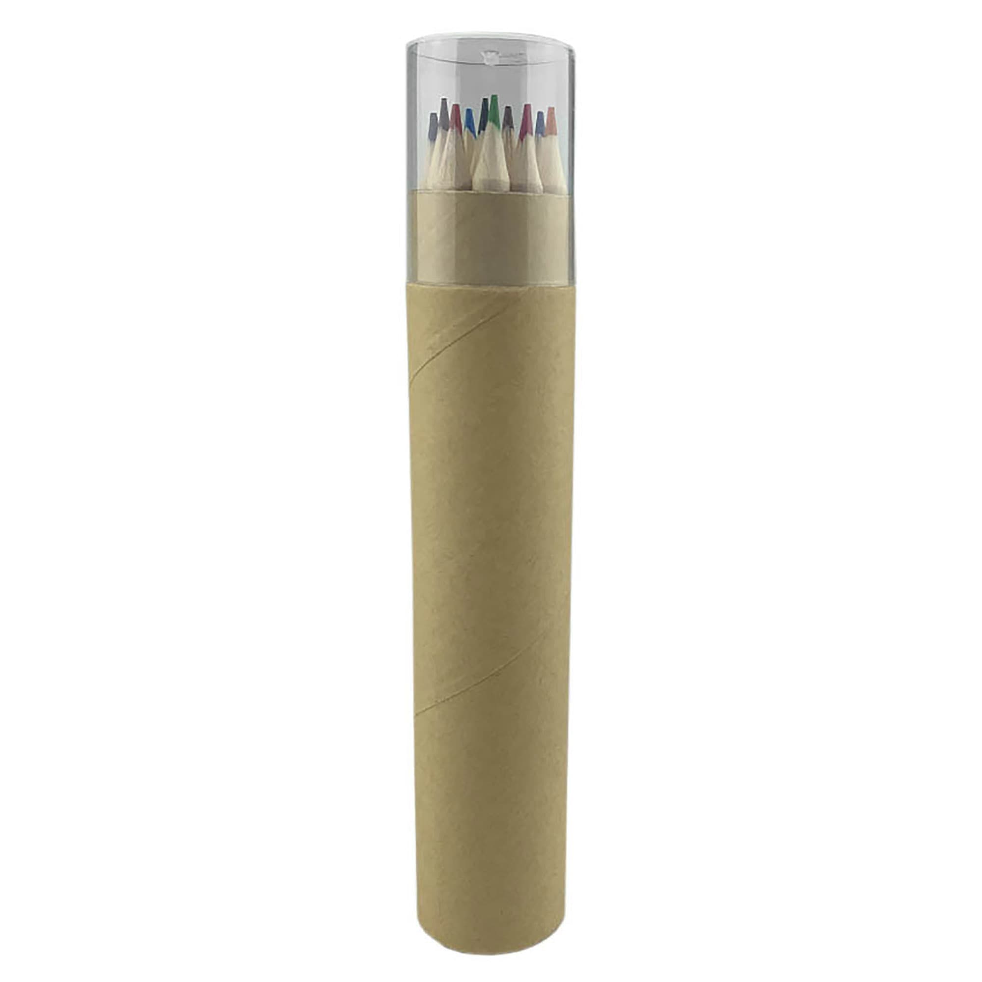 12 assorted coloured basswood pencils in a recycled cardboard tube 2.65mm pre-sharpened pencils are lead free and easy to carry in a plastic capped cylinder shape tube and not suitable for children under 3 year old. Pencil colours Yellow Orange Red Pink Black Light Blue Light Green Green Purple Maroon Blue and Brown.