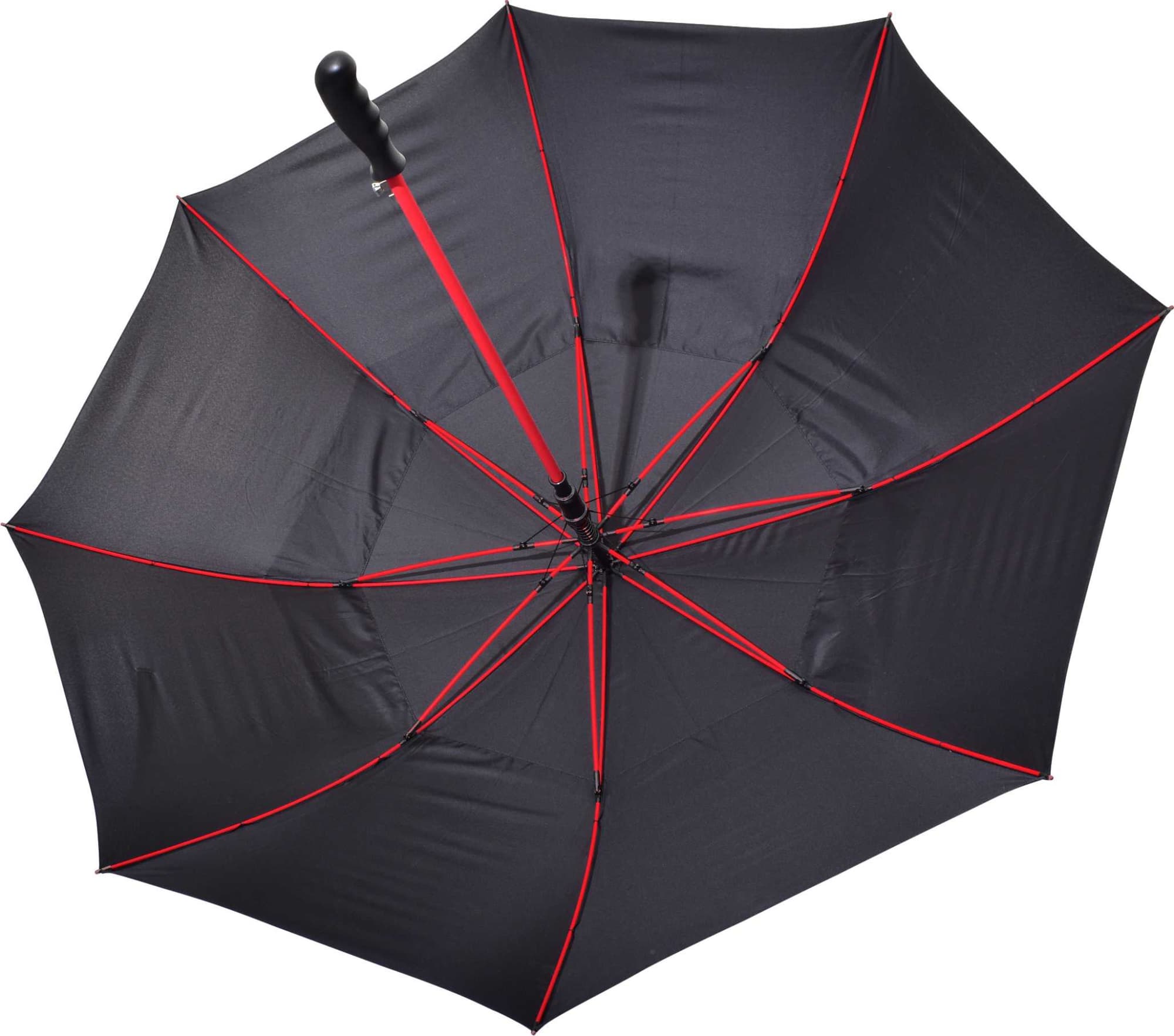 Deluxe 30″ Auto Golf Umbrella, as the name suggests is much more than just a standard golf umbrella. Feature packed, this 8 panel full size golf umbrella includes an automatic open function, vented canopy for instant wind gust release, double Velcro ties, sturdy coloured fibreglass shaft and ribs, ‘Easy Grip’ handle, colour co-ordinated pouch and non-slip rubber end. Made from premium grade 190T Pongee, these umbrellas will definitely stand out from the crowd.