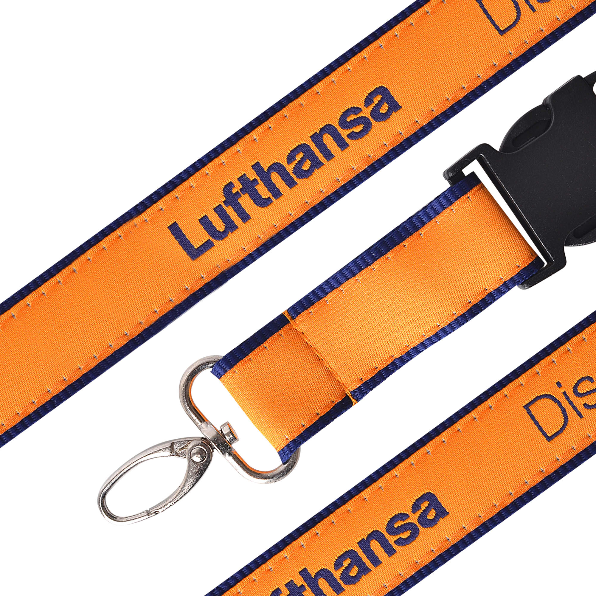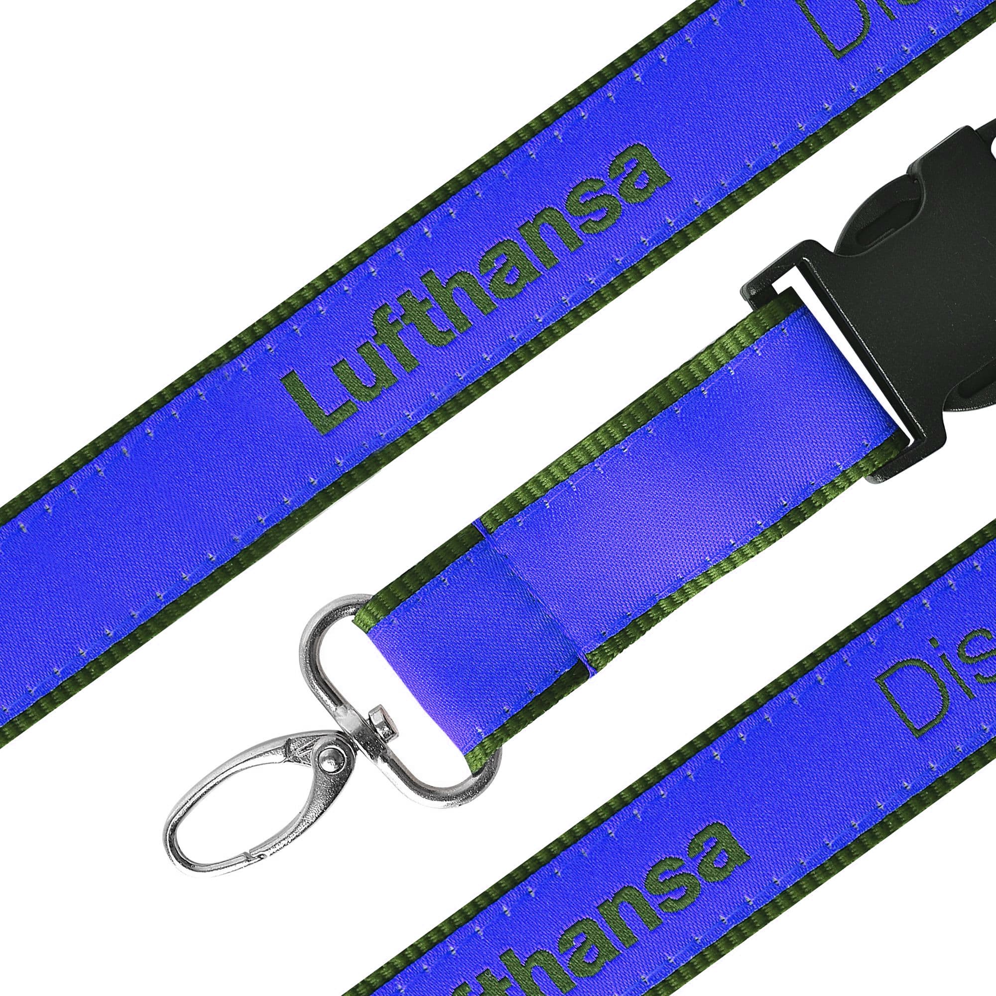 Our lanyard is a braided design woven into the fabric. The result is a durable product made of polyester. Because it has a solid second layer of finish, the end result is a detailed design which is not lost in the printing process.
