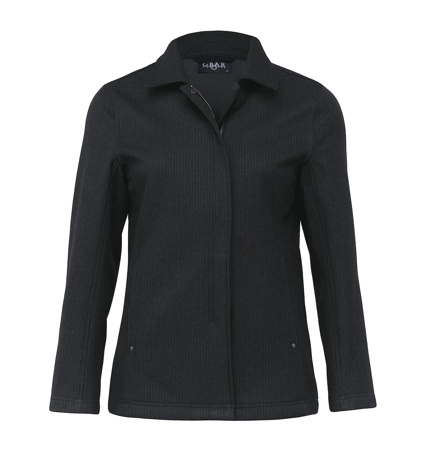 100% polyester herringbone softshell bonded with anti-pill microfleece|Wind resistant|breathable|showerproof|water repellant rating 5000mm|Tapered fit|Two piece self fabric collar|Concealed zippered plaquet with hidden domes and external storm flap|Side panel detail|Top stitch detailing|Welt pockets with MP3 exit and rivet detail