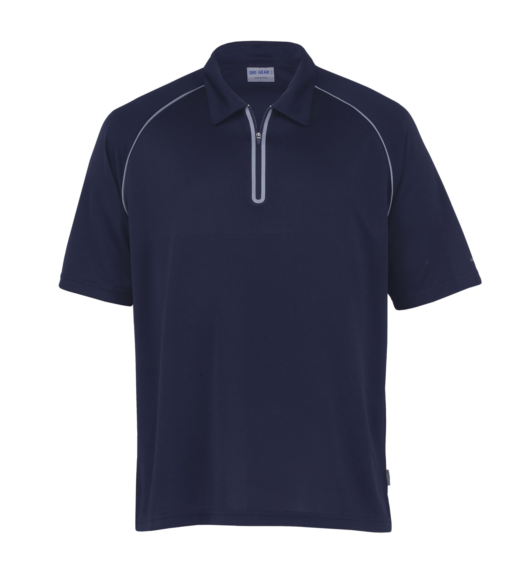 150gsm 100% micro poly mini waffle|Moisture wicking|UV protection|Classic fit|Self fabric collar|Raglan sleeve with contrast piping|Welded zipped plaquet|Side splits at hem|DRI GEAR – XTF (Xtreme Technical Fabric) print on left sleeve hem|DRI GEAR side pip