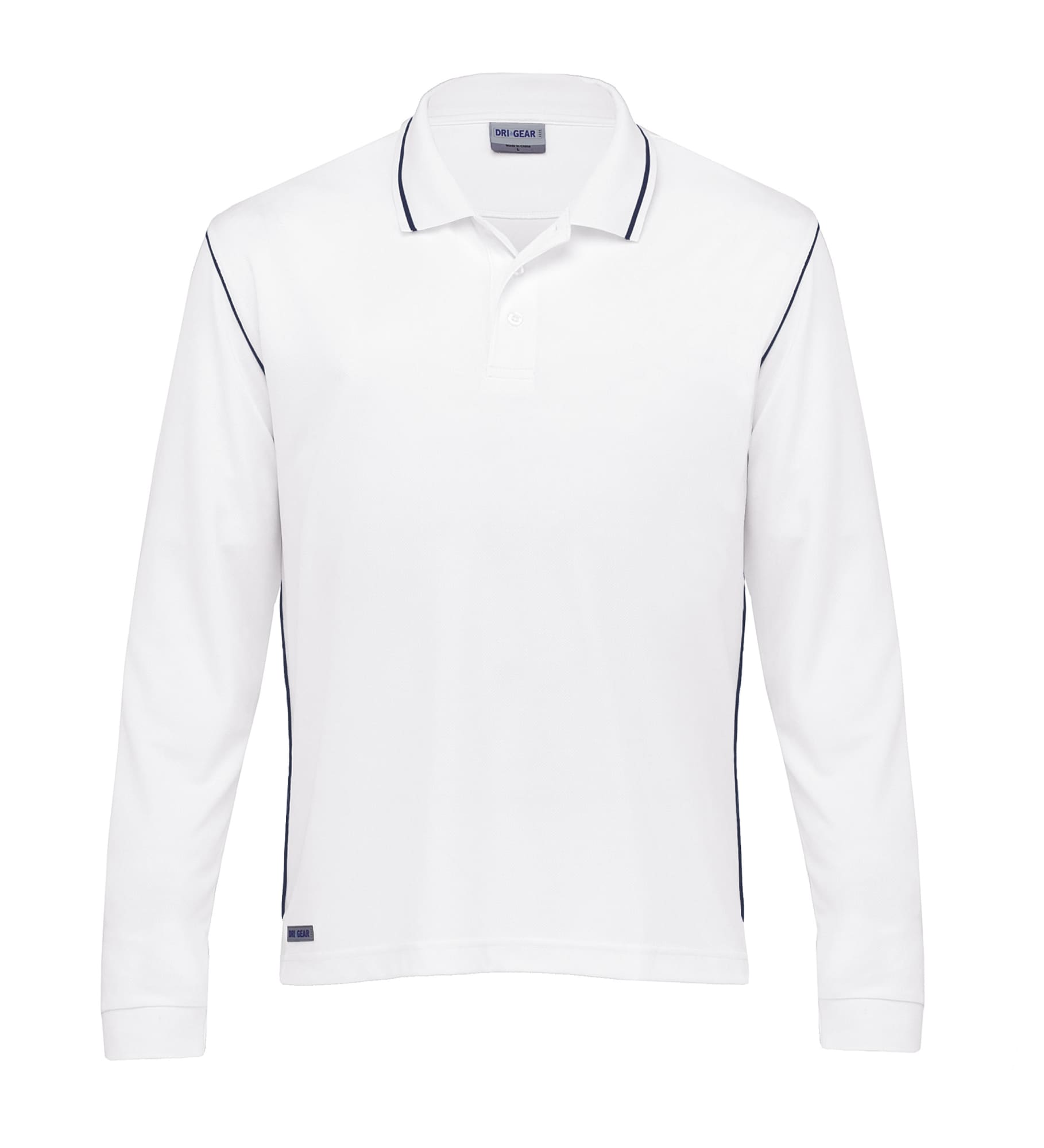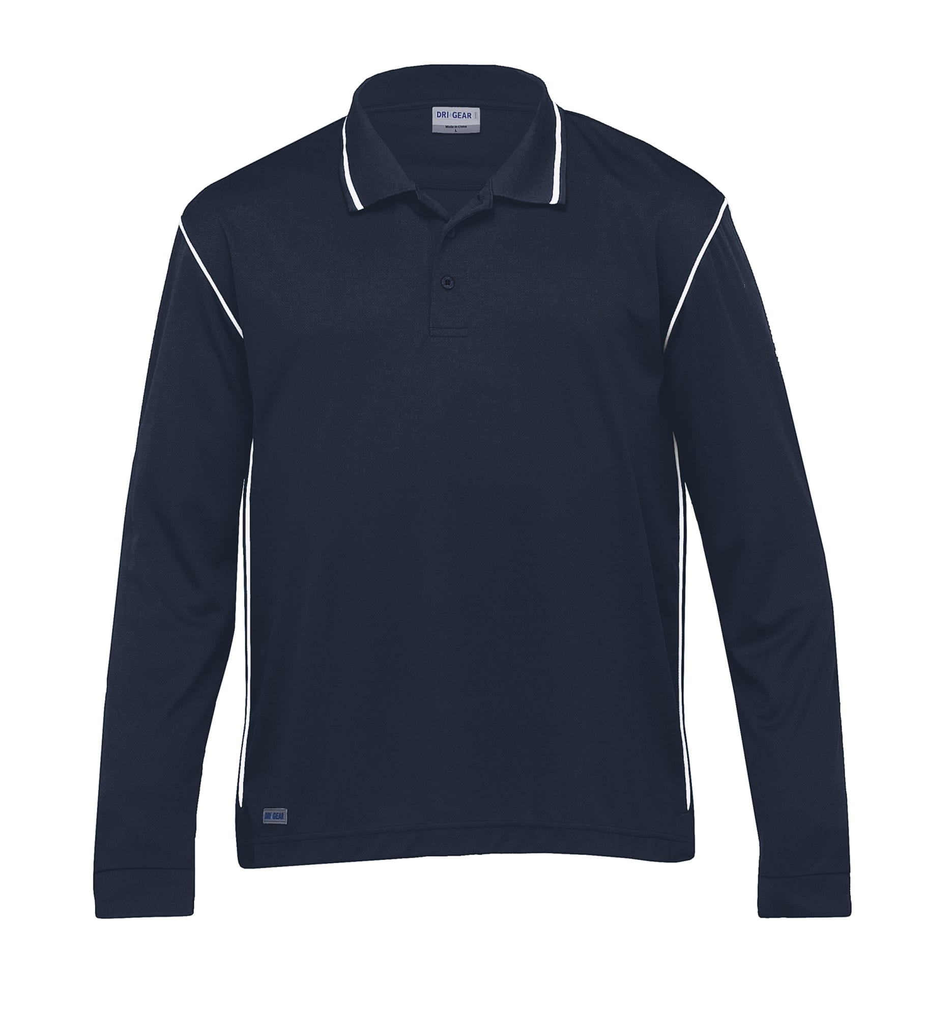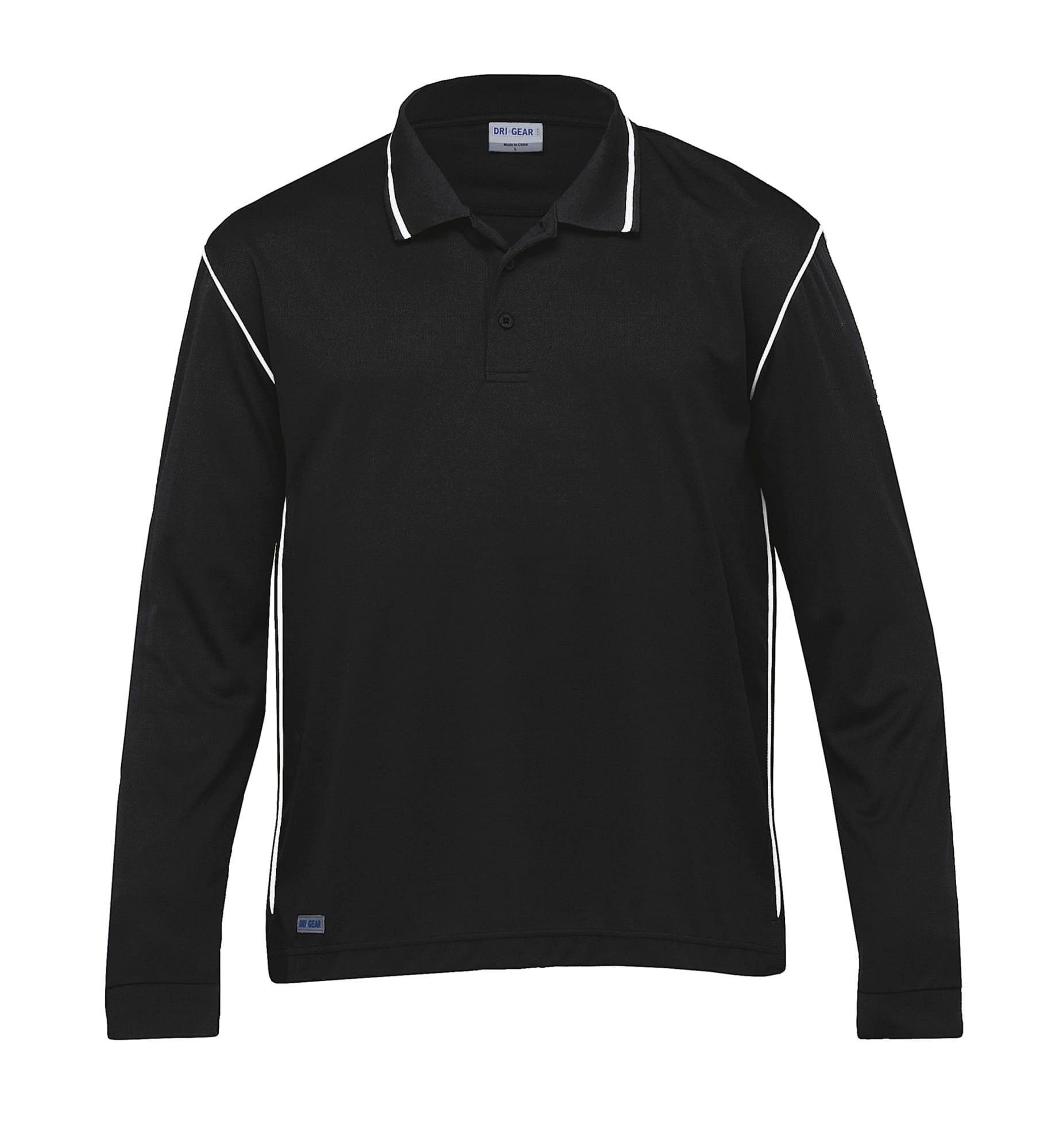 140gsm 100% micro poly eyelet mesh|Moisture wicking|UV protection|Classic fit|Long sleeve with rib cuff|Tipping detail on flat knit collar|Buttoned plaquet|Contrast piping detail on armhole and side seam|Side splits at hem|DRI GEAR reflective badge on straight hem