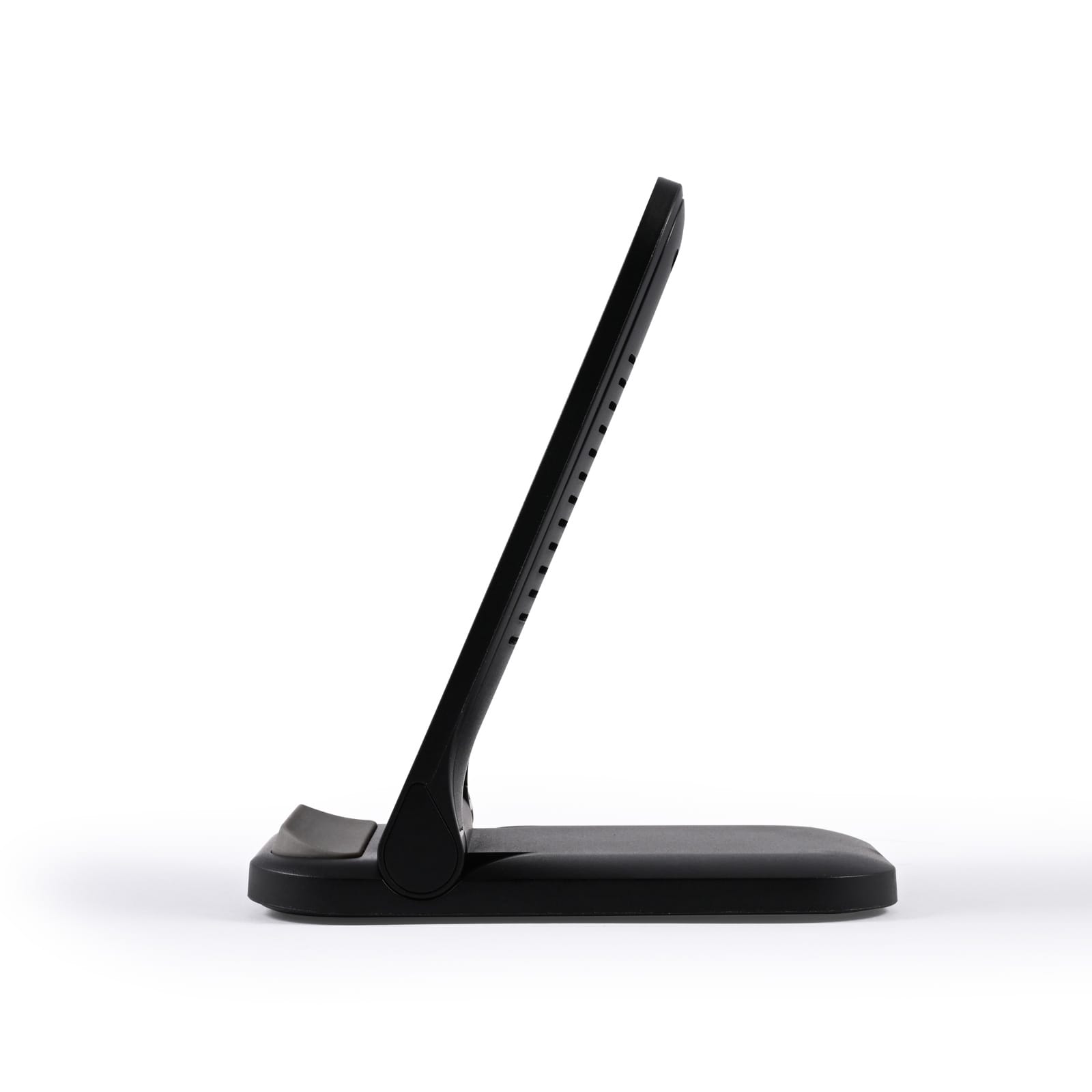 Introducing the Dune Fast Wireless Charger – a dual-coil, upright phone stand designed for fast and efficient wireless charging. This versatile charger supports both landscape and portrait orientations, making it easy to use your device while charging. It delivers rapid charging when paired with a 9V/2.0A power source (fast charge wall charger) and a Type C cable, or charges at standard rates with a 5V/2.0A power source. The charger includes a 50cm Type C cable and is available in sleek Black or White.