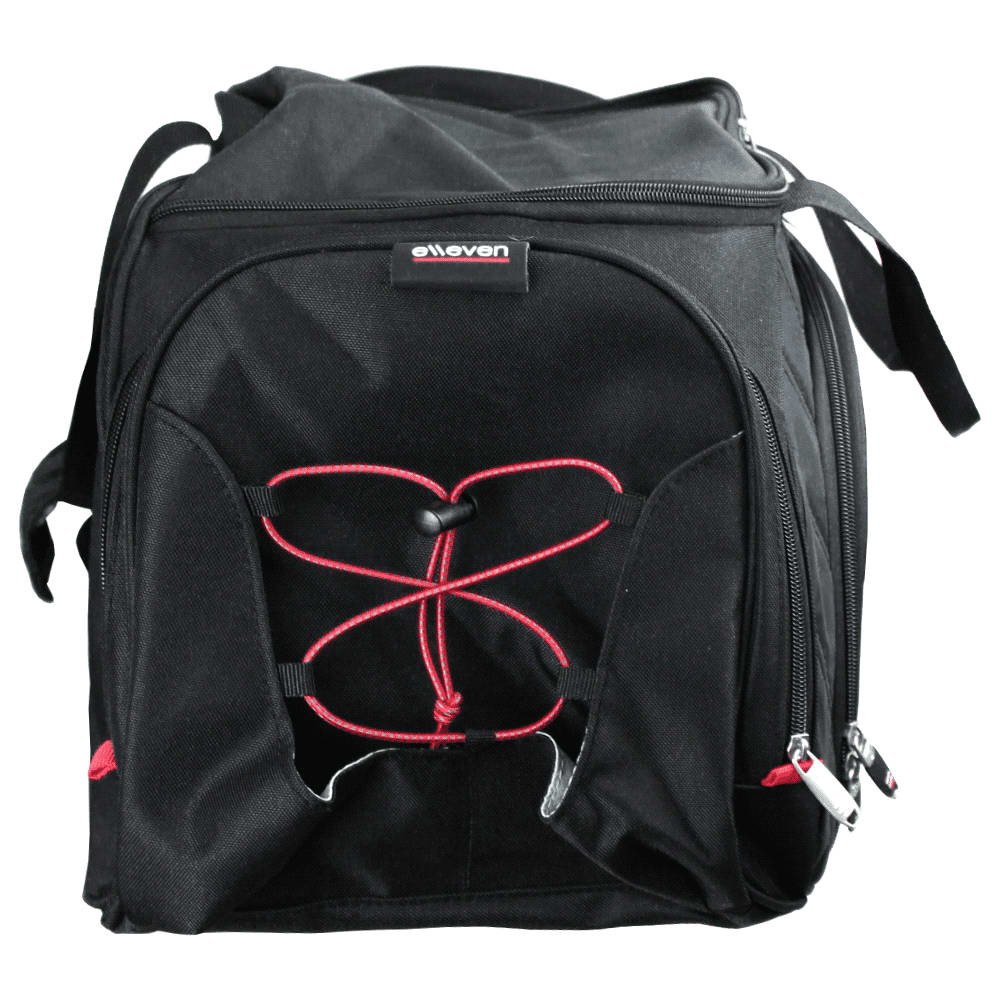| Features | Large zippered front pocket includes removable Tech Trap organiser panel and pocket organisation. Large ventilated side pocket holds shoes or damp garments. Additional side zippered accessory pocket with exterior elastic shock cord for maximum storage. Main compartment capacity is approximately 43 litres. |