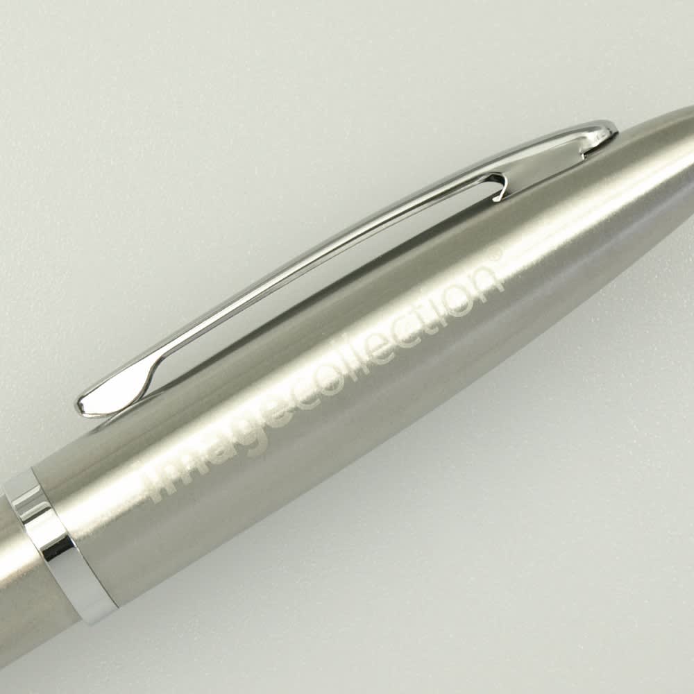 The Eva Pen is a sleek twist-action pen with a matte-coloured barrel and glossy silver trim, offering a smooth writing experience with its black ink refill. Perfect for adding a touch of sophistication to your everyday writing!