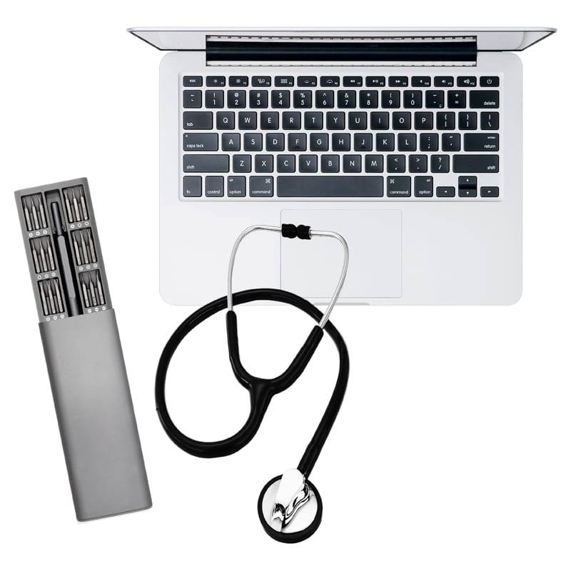 The ultimate high-performance precision bit kit manufactured from durable S2 steel with an anti-slip handle includes essential parts for repairing smartphones, tablets, and PCs including iPhone, iPad, MacBook Air, and MacBook Pro, as well as gaming consoles and controllers from Nintendo, PlayStation, or XBox. Materials: Aluminium, Steel