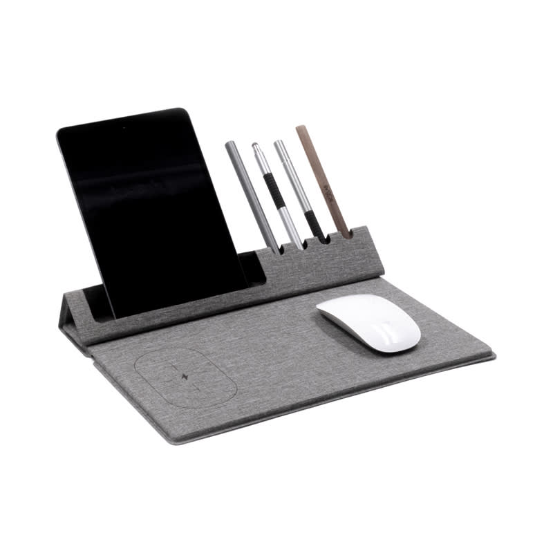 Reinvent your workspace with Evopad Charge Eco! Made from recycled PET bottles this multifunction portable desktop tool doubles as a Fast Wireless Charger 15W, Mouse Pad, Phone Holder and Pen Holder. At the same time affording you a comfortable smartphone viewing angle and storage for up to 4 stylus, pens or pencils. Whether you are working in the office, at home or from the coffee shop, Evopad Charge Eco makes sure your workspace will be organised wherever that might be. Material: RPET.