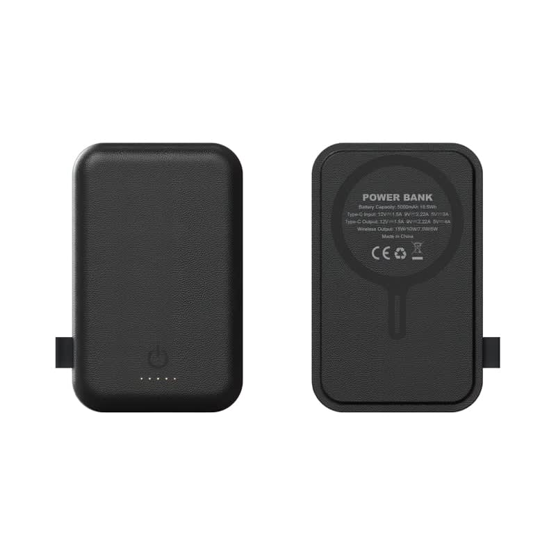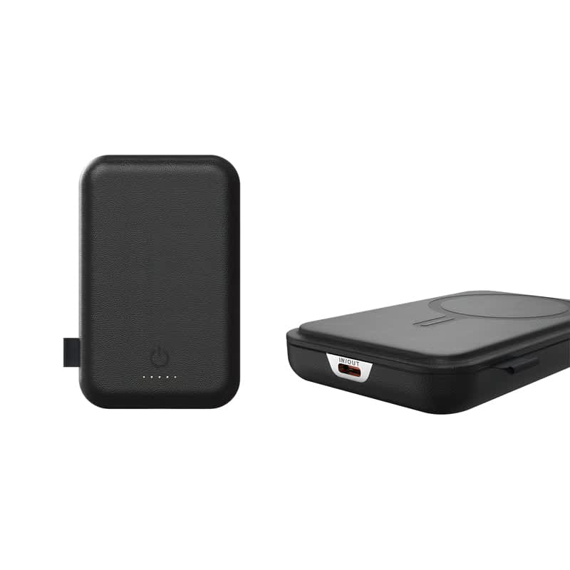| Specifications | 5000 mAh (18.5Wh) Lithium Polymer Battery. PD20W Type-C Input: 5V/3A, 9V/2.22A, 12V/1.5A, Type-C Output: 5V/3A, 9V/2.22A, 12V/1.5A, Wireless Output: 15W (compatible 10W, 7.5W & 5W), Battery Charge Time: 2-3 hours, Number of Device Charges: iPhone 16 Pro (92%), iPad Air 10th Gen (40%), Samsung s24 (78%), Charge Cycle > 500 times, Weight:133g. |