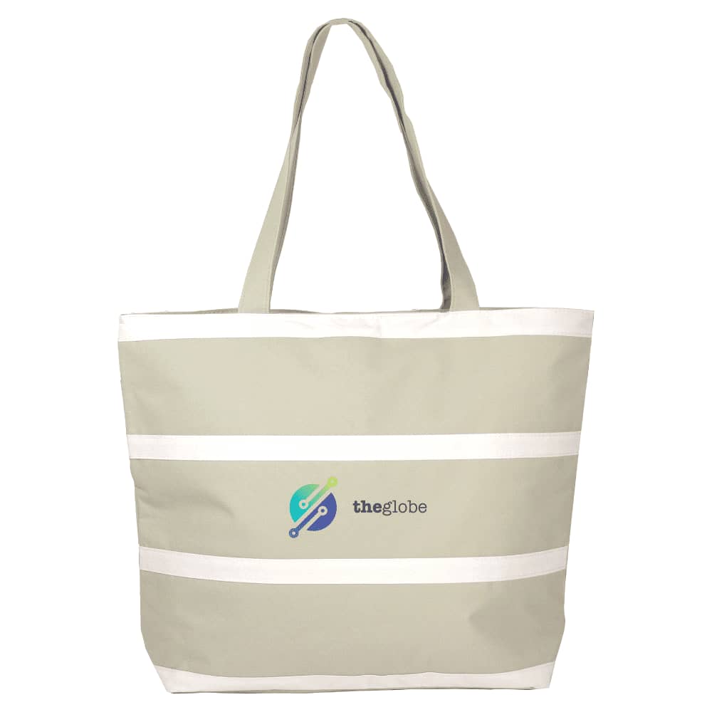 Stylish grey and white striped bag made from 600D woven polyester. Perfect to team with any of our towels.