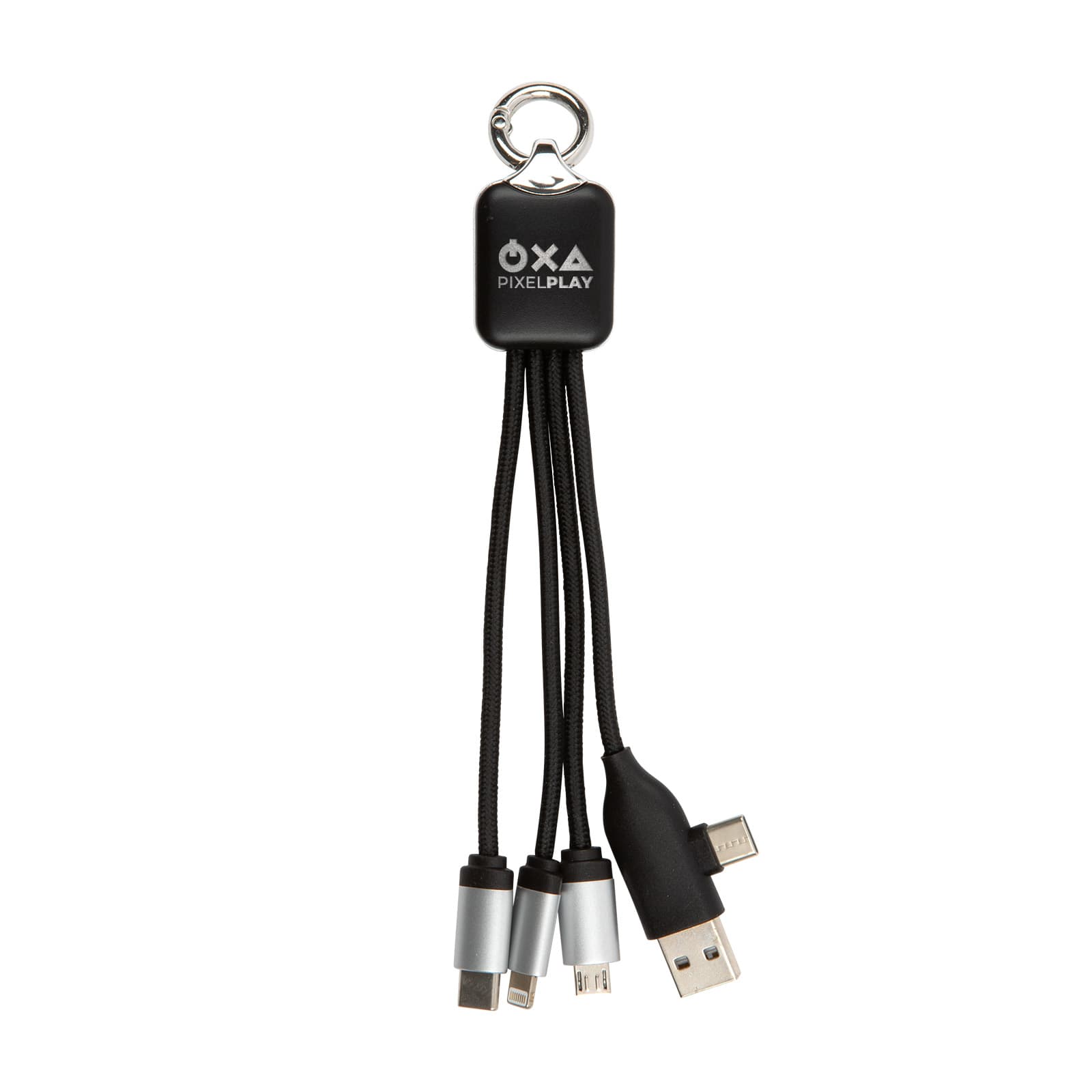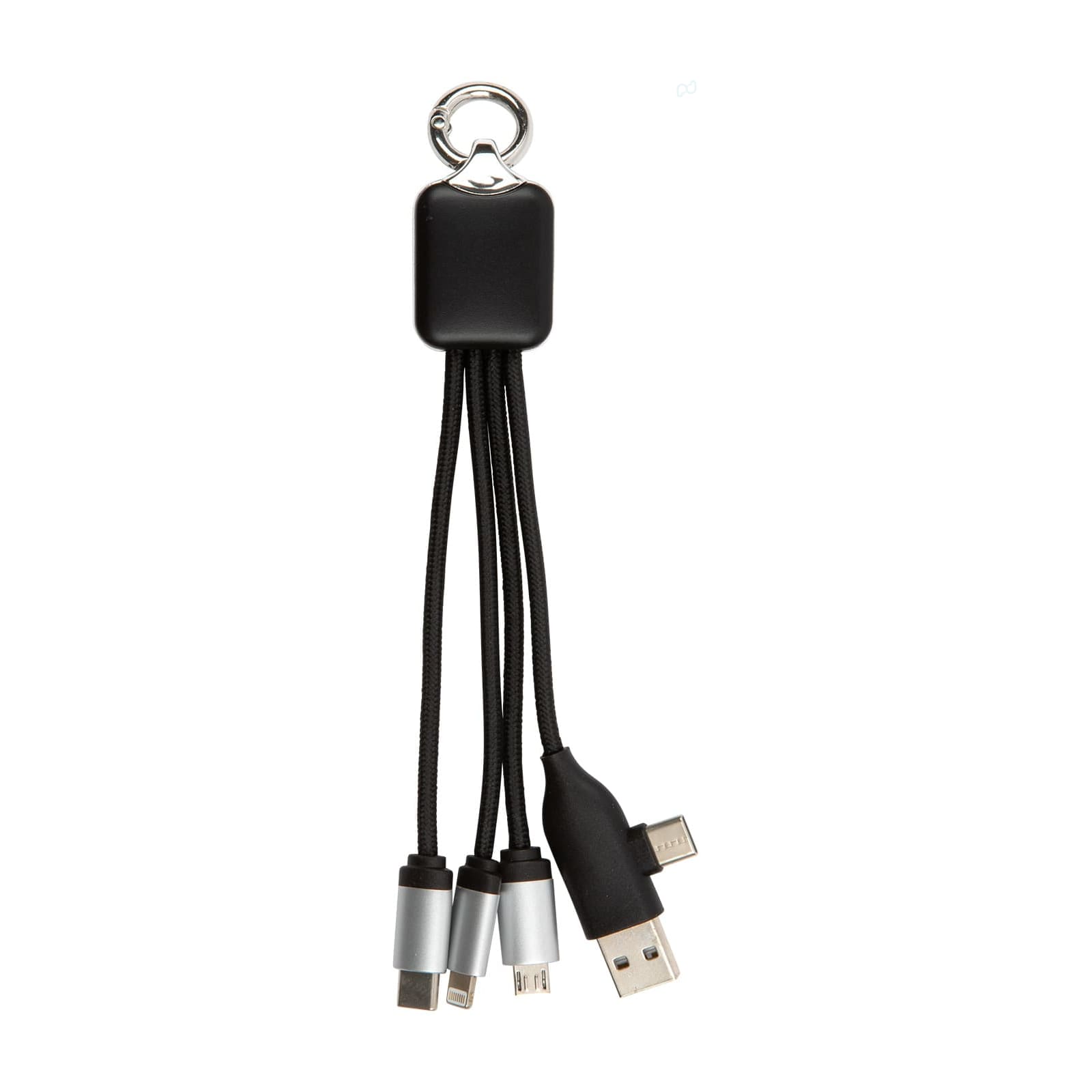 The Kinetic Square Glow Cable is the ultimate 4-in-1 charging solution, designed to simplify your device connectivity needs. This cable features Type C, Micro USB, 8 Pin power out, USB A, and Type C power in connectors, making it compatible with a wide range of devices. The illuminated square top section not only serves as a power indicator but also brings your laser-engraved design or logo to life with a captivating glow when connected to power. Crafted with a braided cable and silver connectors, it combines durability and style while offering an elegant, distraction-free charging experience. Perfect for those who need a reliable charging cable without data transfer capabilities.