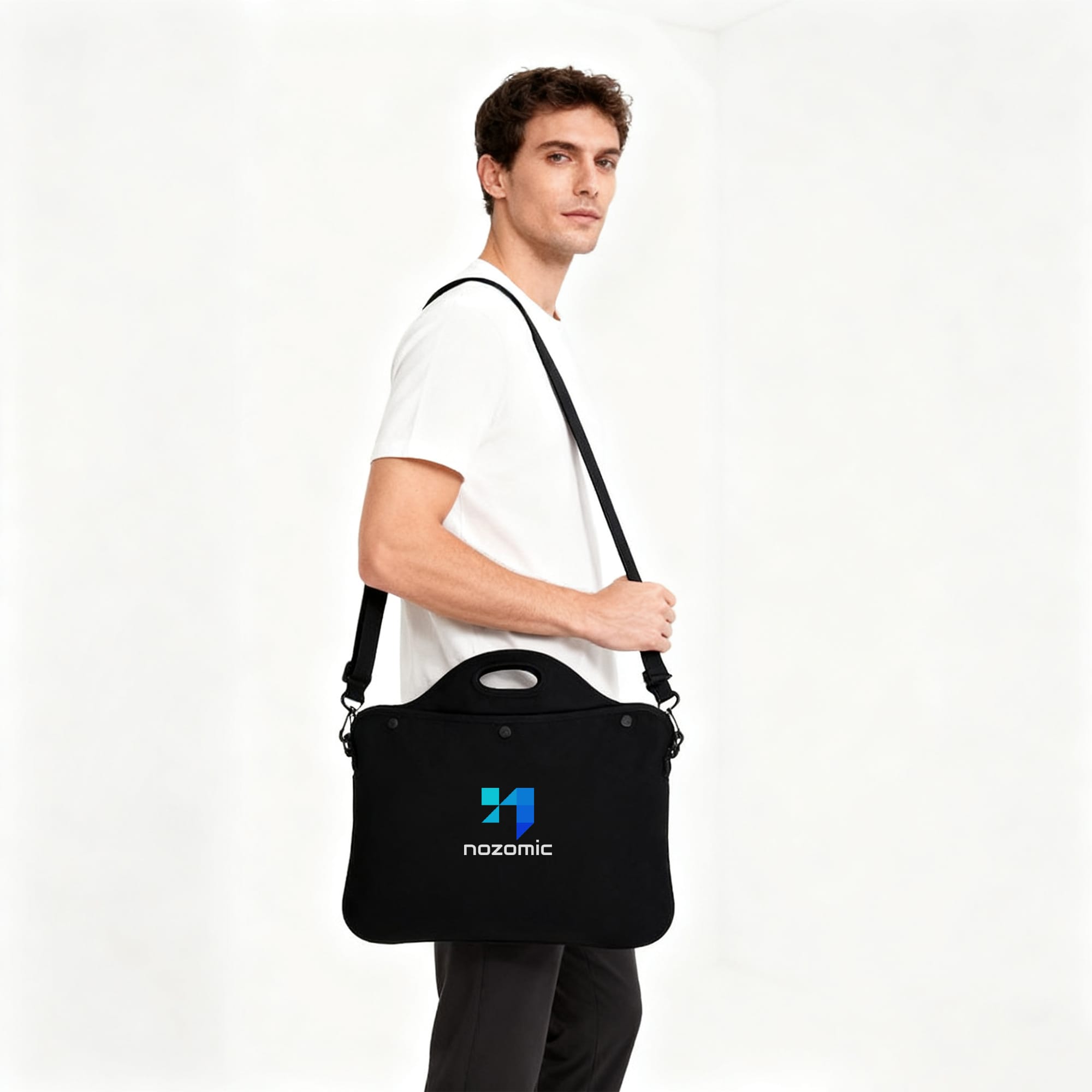 The Laptop Bag with Handle is a stylish, convenient way to carry your laptop. This item is made from neoprene, and features dual handles for easy handling.