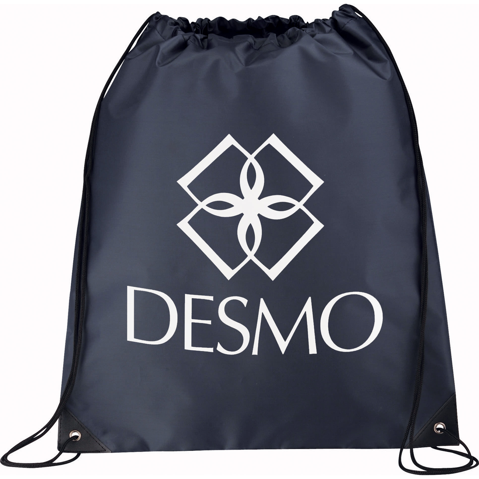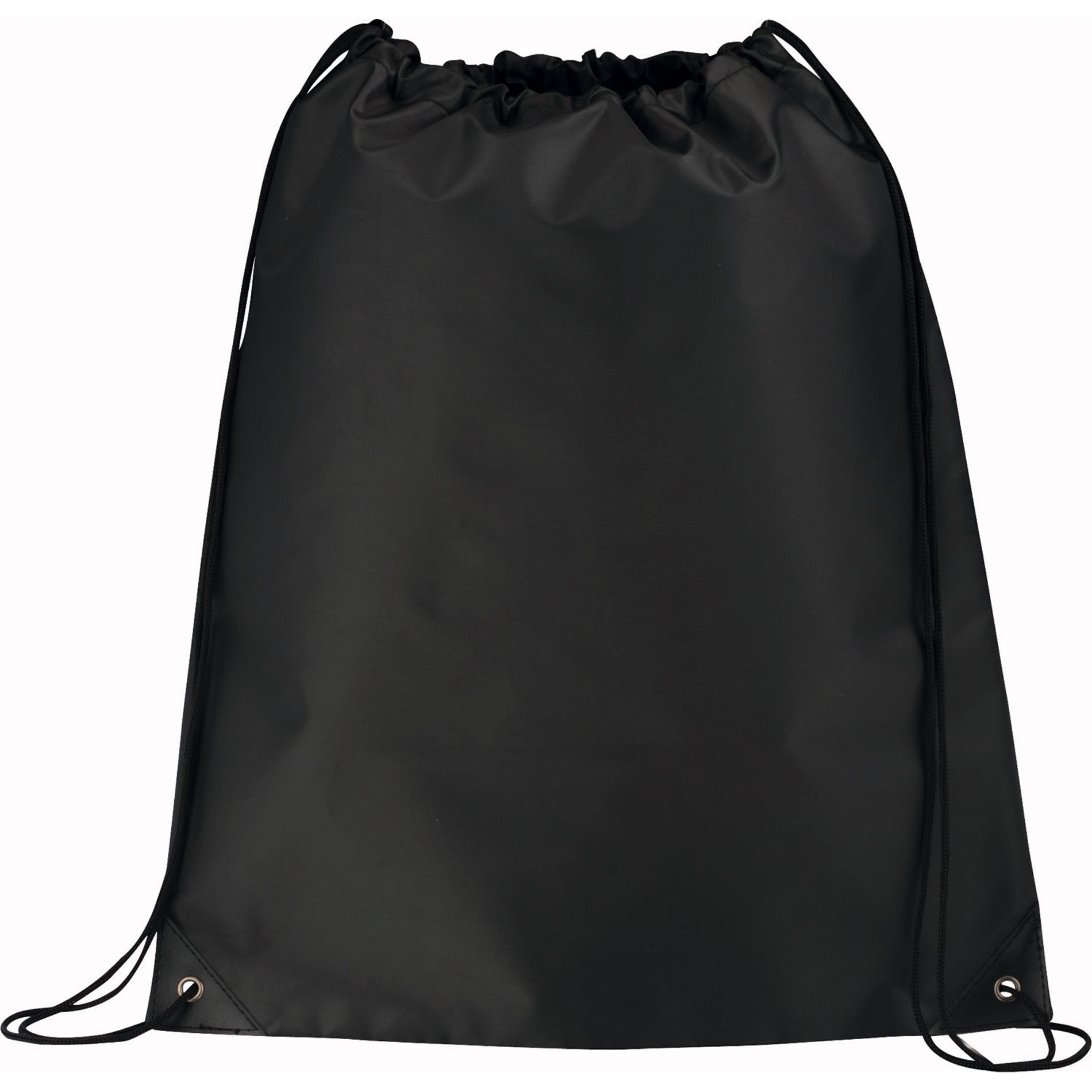 Large open main compartment with drawstring rope closure. Reinforced vinyl corner tabs.