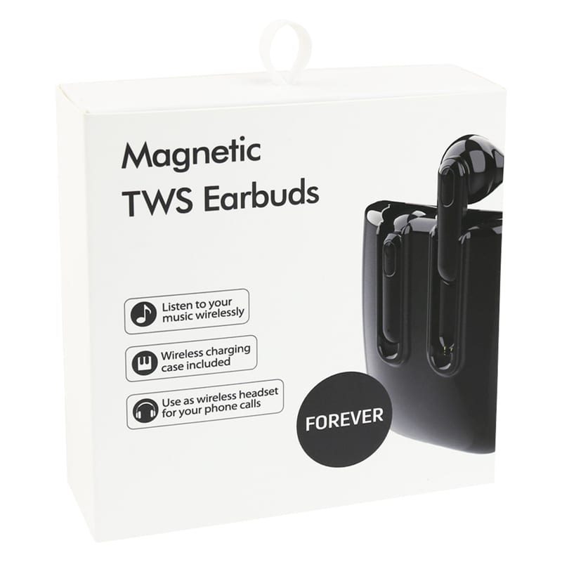 The Lawson TWS earbuds are housed in a unique and slim magnetic charge case that conveniently attaches to the Magsafe smartphones or wireless chargers. These ultra-light TWS earbuds offer fast, reliable auto-pairing and high fidelity stereo sound. In addition, the one-touch earbuds operate a multifunction button for track selector, volume control, and the call-back function. Simply recharge the earbuds by placing them back into the charging case, putting them on a wireless charger, or plugging them into an AC adaptor. An extra adhesive-backed magnetic plate for devices without built-in Magsafe technology, a Type-C charge cable, and a user manual are included. Material: ABS, PC.