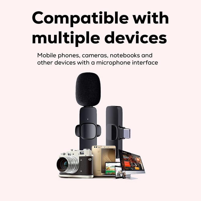 Try the Lido Pro Wireless microphone and enjoy the hands-free, high-performance microphone that works with Type-C and iOS phones. This compact mic with automatic pairing, 360-degree coverage, high sensitivity, and a rechargeable microphone provides a stable signal that can still record clearly in noisy environments. In addition, the Lido Pro with six-hour battery life is ideal for online live broadcast, video recording, public speaking and presentations. This one mic is now compatible with Android and iOS smartphones, tablets and notebooks. Includes a Type-C to Lightning adaptor, Type-C charging cable and user manual. Material: ABS, High-Density Foam.