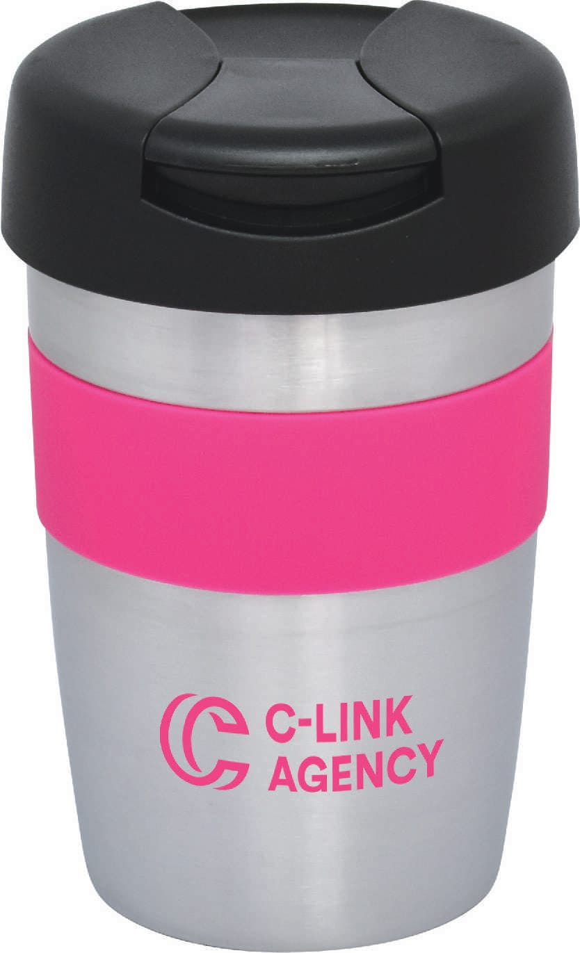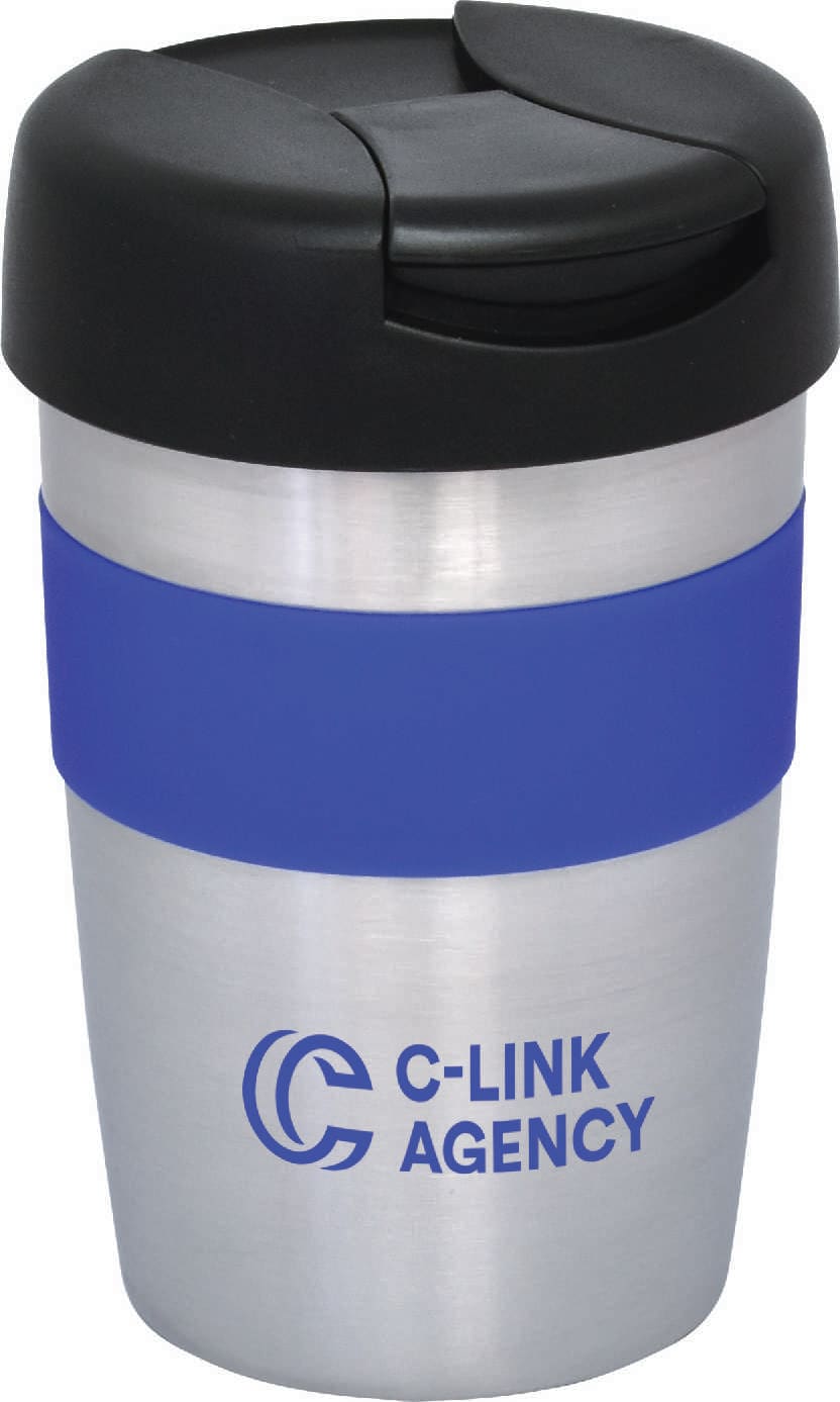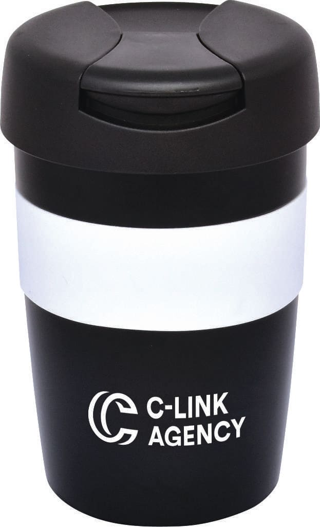 This BPA free thermal insulated mug is crafted with Stainless Steel inner and outer walls, designed to keep your drink hot for hours. The double-wall construction also ensures that the outside of the mug remains cool at all times. Milan Double Wall Mug is perfect for those on the go and features a unique lock-back spill-proof lid as well as a soft feel silicone grip, making safe handling a breeze. Mugs are supplied packed in a matt black gift box. For very special occassions you might prefer to have your mugs packed in our optional Impressions Tube, see R4530. Mugs are available in matt black stainless steel or natural look stainless steel both with black lids.