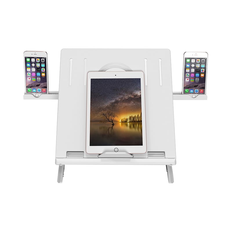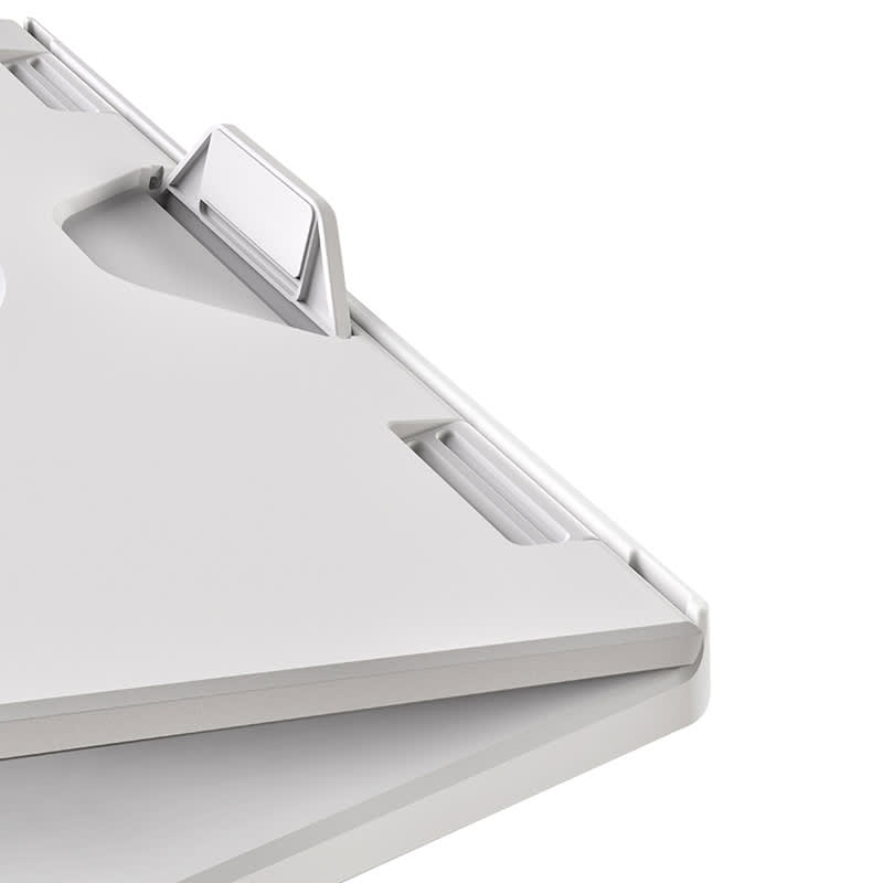 Lightweight and foldable the Milo laptop stand allows you to work comfortably anywhere, and then fold the stand like book when travelling. Ergonomically designed and featuring 9 viewing angles to decrease user fatigue, this stand with its locking metal risers create a durable and stable work station with storage areas for your keyboard, mouse and smartphones. The Milo stand is capable of holding 15.6” laptops and weights of up to 10 Kgs is complete with anti-slip rubber pads to protect your laptop and, provides great airflow and heat dissipation for your equipment while you work. Material: ABS, Metal.