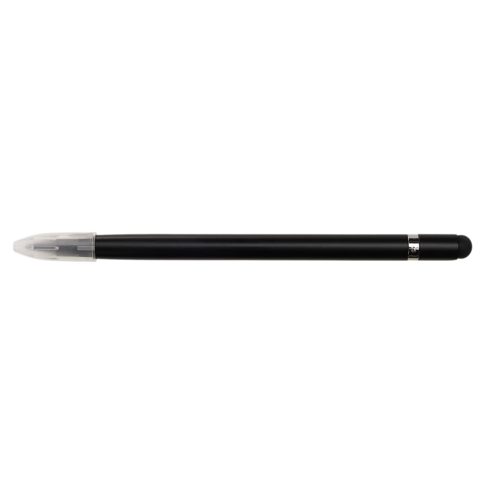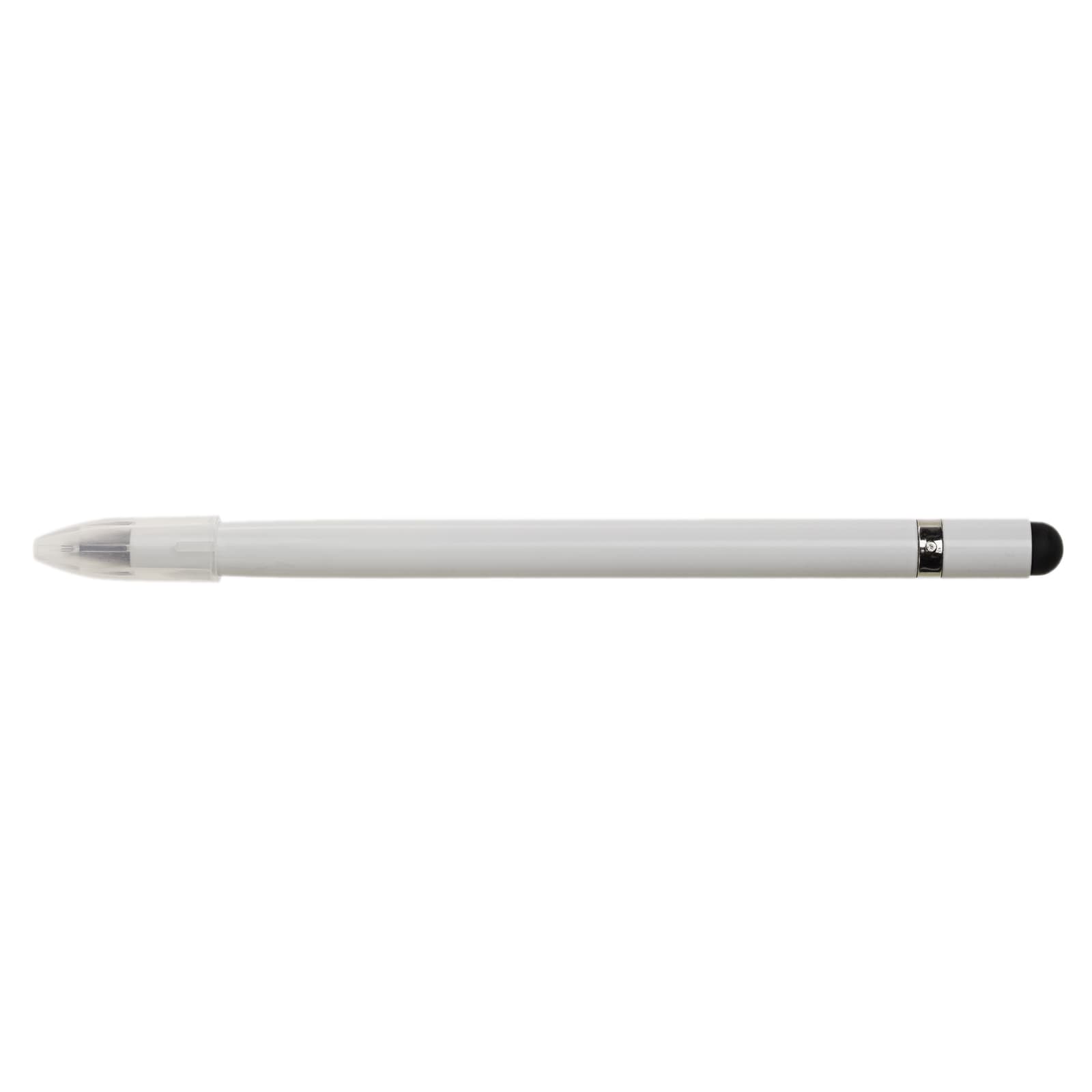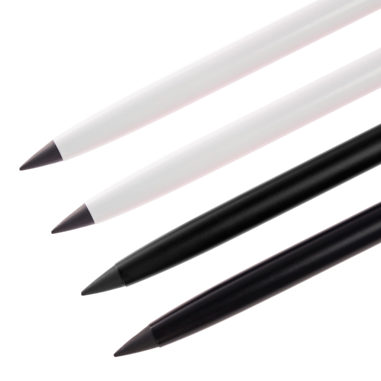 Introducing the Mirage Aluminium Inkless Pen, the perfect blend of style, functionality, and sustainability. This innovative pen features a sleek aluminium barrel available in matte black or gloss white, complemented by a frosted plastic cap. It writes using a special metal alloy that offers a smooth black writing colour while eliminating the need for ink. The metal-alloy tip is designed to be long-lasting, similar to a very hard pencil but without the tip wearing down noticeably. The pen also includes a black stylus, hidden eraser, and a pen stop to prevent rolling. With silver highlights adding a touch of sophistication, the Mirage Inkless Pen is an excellent eco-conscious alternative.