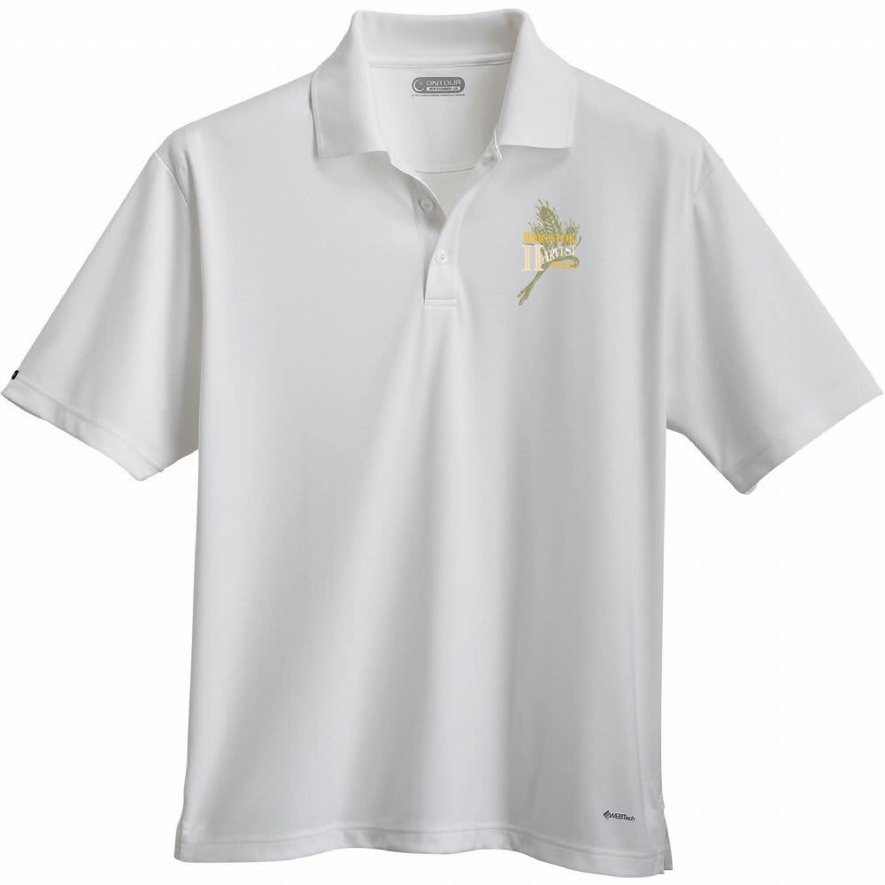Advanced WEBTech™ 100 wicking fabric offers breathable moisture management. Classic flat knit collar with long, three-button placket. Contrast ‘X’ shaped bartacks at slits and taping on inside of slits.