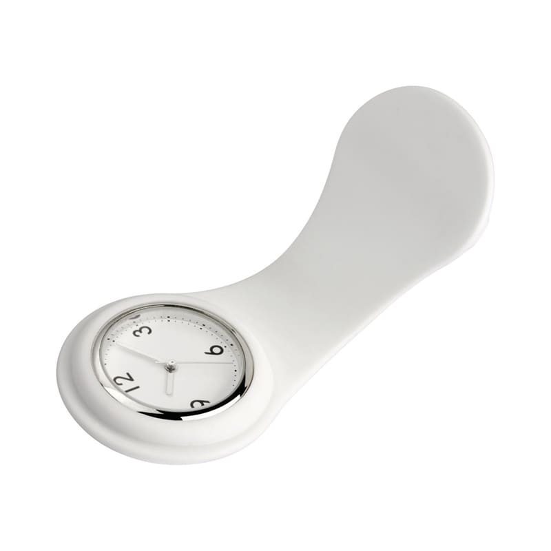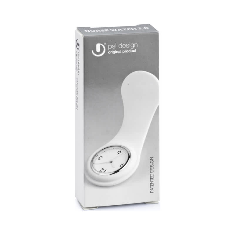 Our famous Nurse watch has a new design. Alloy watch case with environmentally friendly silicone rubber housing and safety pin. Analog quartz movement. Shower proof construction. Battery Type 1 x button cell, Battery Life over 1 year, One year manufacturing guarantee. Material: Ally, Silicone