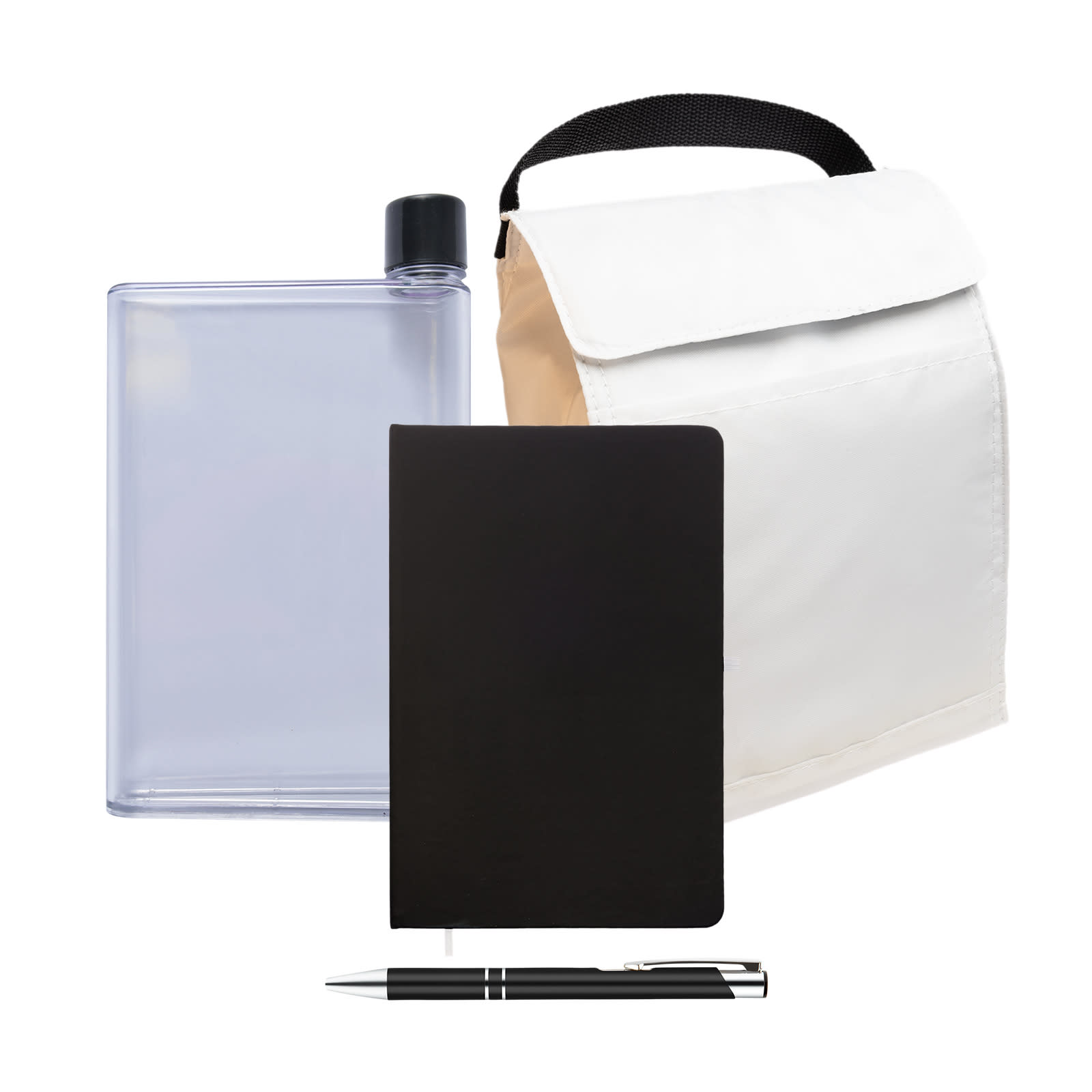 | Print Areas | Screenprint: Lunch Bag - 110 x 100mm (LxH), Drink Bottle - 90 x 150mm (LxH), Notebook - 100 x 150mm (LxH); Digital Transfer: Lunch Cooler - 110 x 100mm (LxH); Digital Print: Drink Bottle - 90 x 150mm (LxH), Notebook - 100 x 150mm (LxH); Laser Engraved: Pen - 50 x 6mm (LxH); Pad Print: Pen - 50 x 7mm (LxH) |