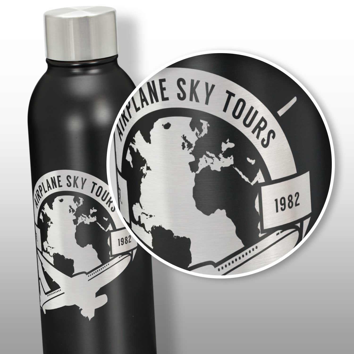 500ml double wall, vacuum insulated stainless steel drink bottle with a smart matte finish. It will keep drinks cold for 24 hours or hot for up to 12 hours. Orion has a secure screw on stainless steel lid and is presented in a black gift box or optional gift tube. It laser engraves to a shiny steel finish and is BPA-free. This product is not dishwasher safe and handwashing is recommended.