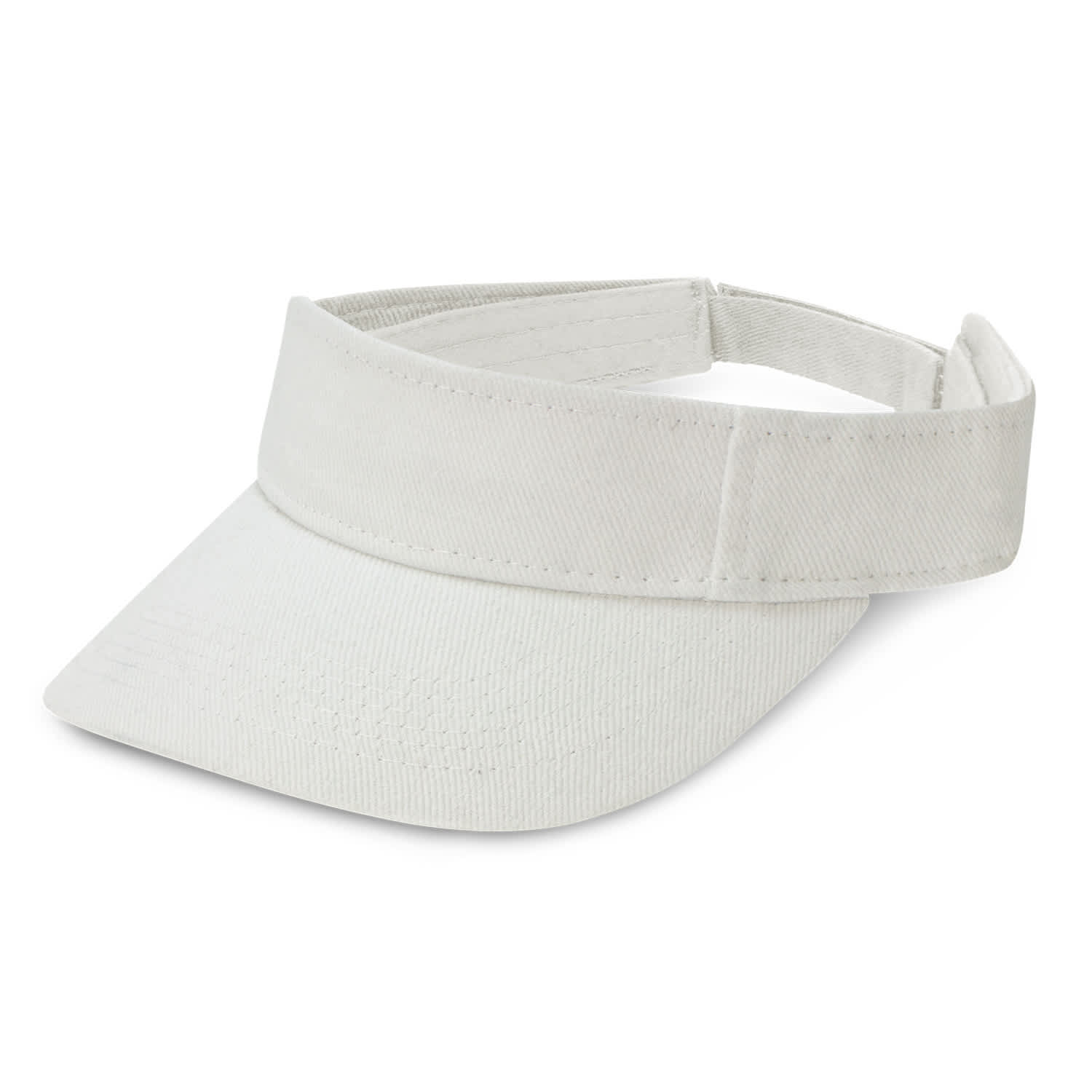 Premium quality cotton twill sun visor with a pre-curved peak, a sweatband and an adjustable Velcro closure which allows one size to fit most people.
