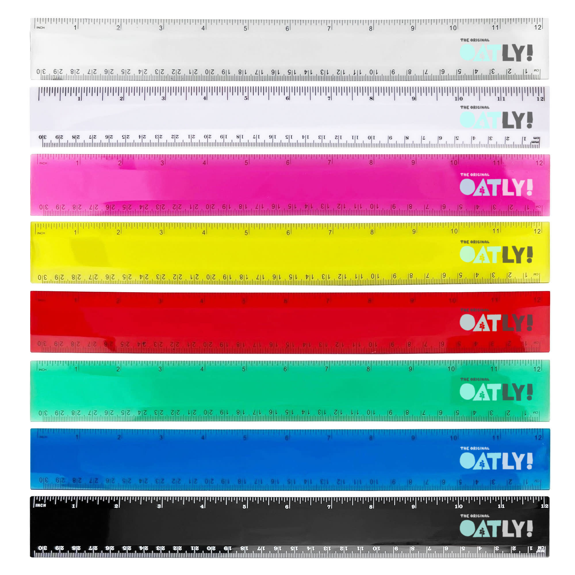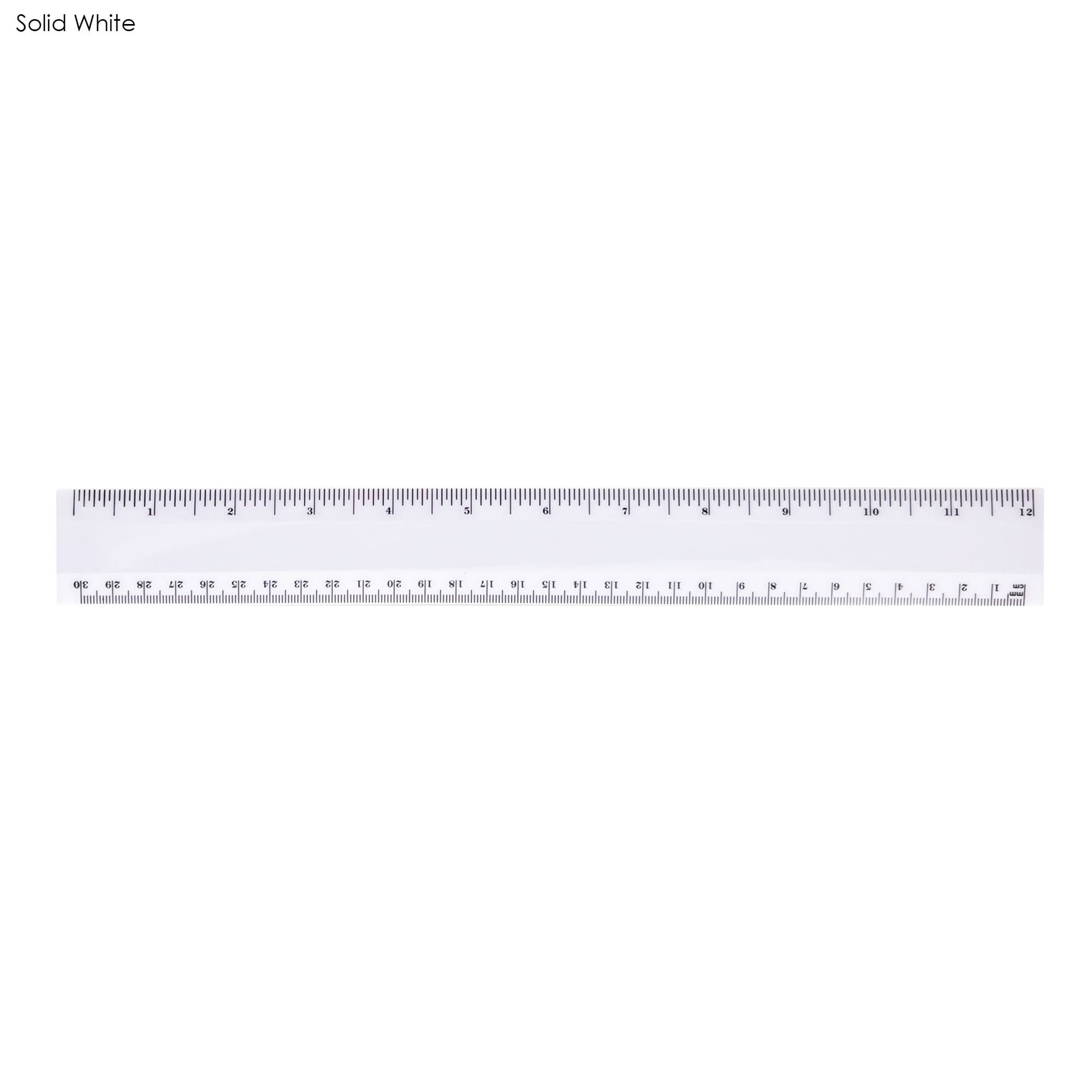 30cm plastic ruler with both sides graduations in centimetres and inches.