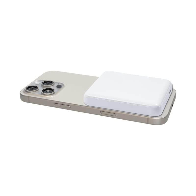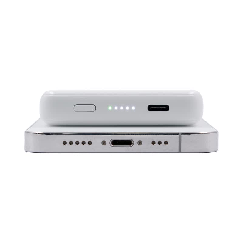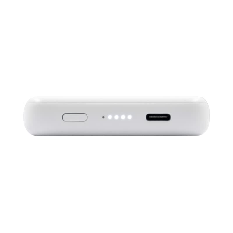 | Specifications | 5000 mAh (19.25Wh) Lithium polymer battery, Type-C Input: DC 5V @ 2.1A, Dual Output: Magnetic Wireless 5W (Magsafe, Qi1, Qi2), Type-C Output: DC 5V/2.4A (12W Max), Battery Charge Time: 2-3 hours, Number of Device Charges: iPhone 16 Pro (92%), iPad Air 10th Gen (40%), Samsung s24 (78%), Weight: 107g. |