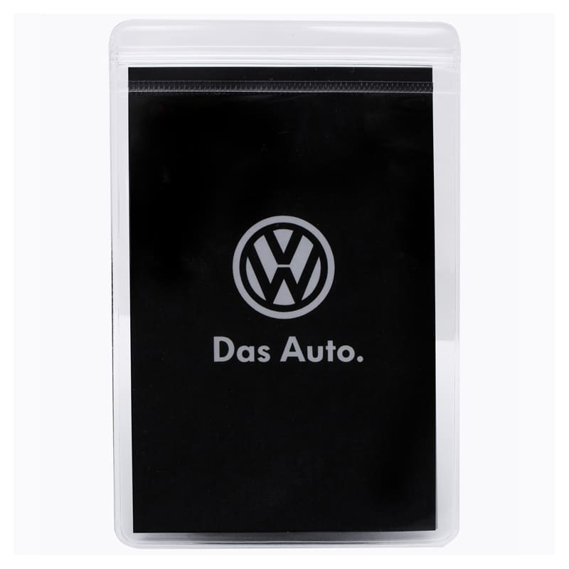 Welded PVC pouch with press lock closure. Fully customised double sided matte finished card can be inserted with the product. Material: PVC
