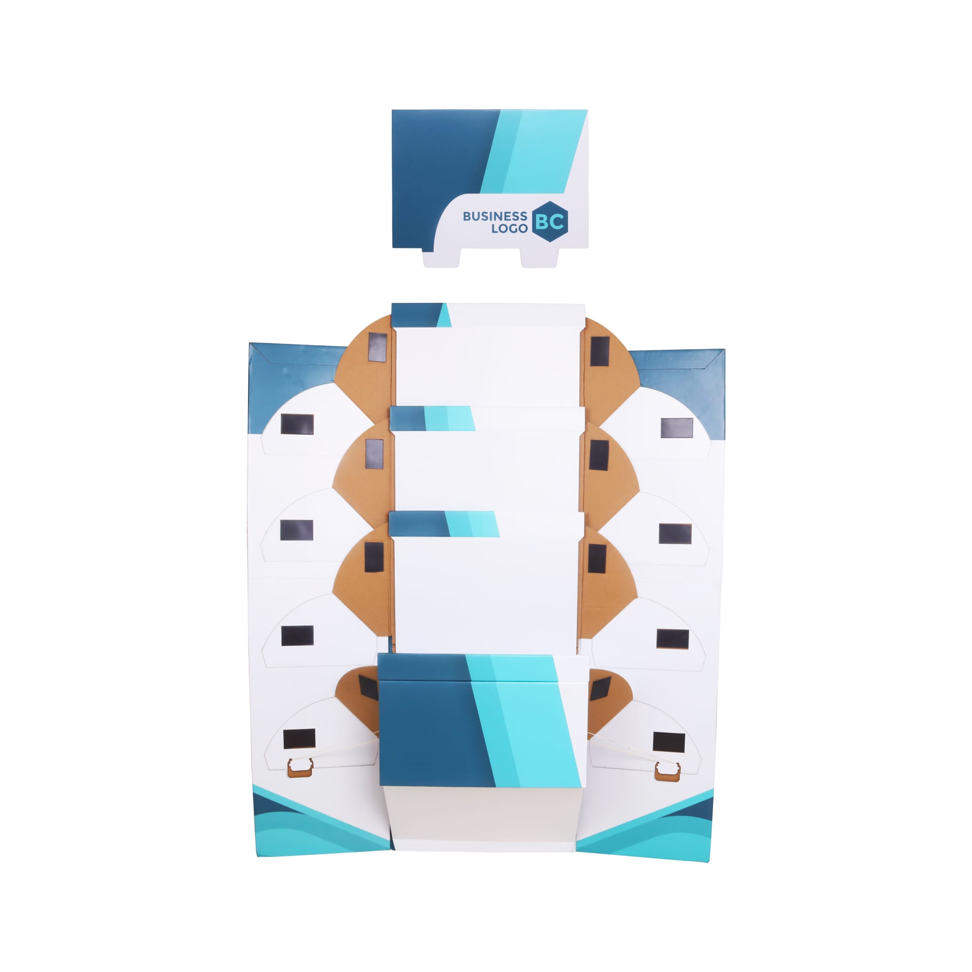 Quick Assembly Premium Cardboard Floor Display is lightweight and functional. The smarter design comes with larger carry capacity. Full size customized design allows you to stand out your branding in the crowd. It’s ideal for exhibitions, supermarkets, shops, or any place to display advertising products. This item is 100% made of recycled and wasted paper, ideal for environment protection. Glossy and matte lamination surface treatment is available to choose from.