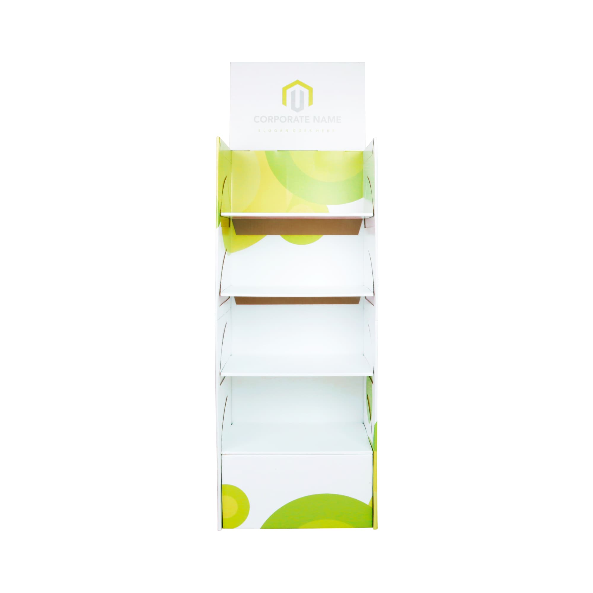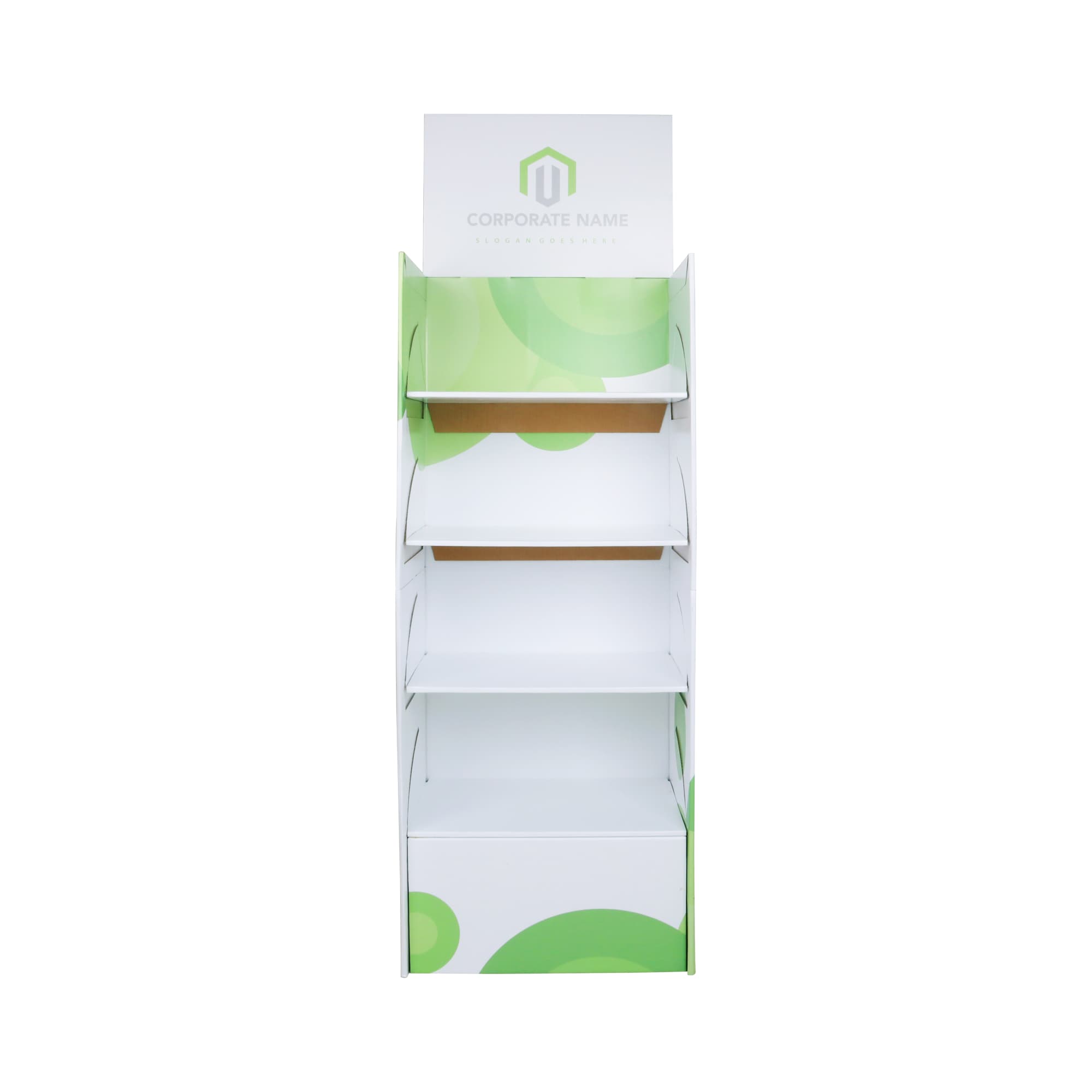 Quick Assembly Standard Cardboard Floor Display is lightweight and easy to assemble in a minute. Full size customized design allows you to stand out your branding in the crowd. It’s ideal for exhibitions, supermarkets, shops, or any place to display advertising products. This item is 100% made of recycled and wasted paper, ideal for environment protection. Glossy and matte lamination surface treatment is available to choose from.