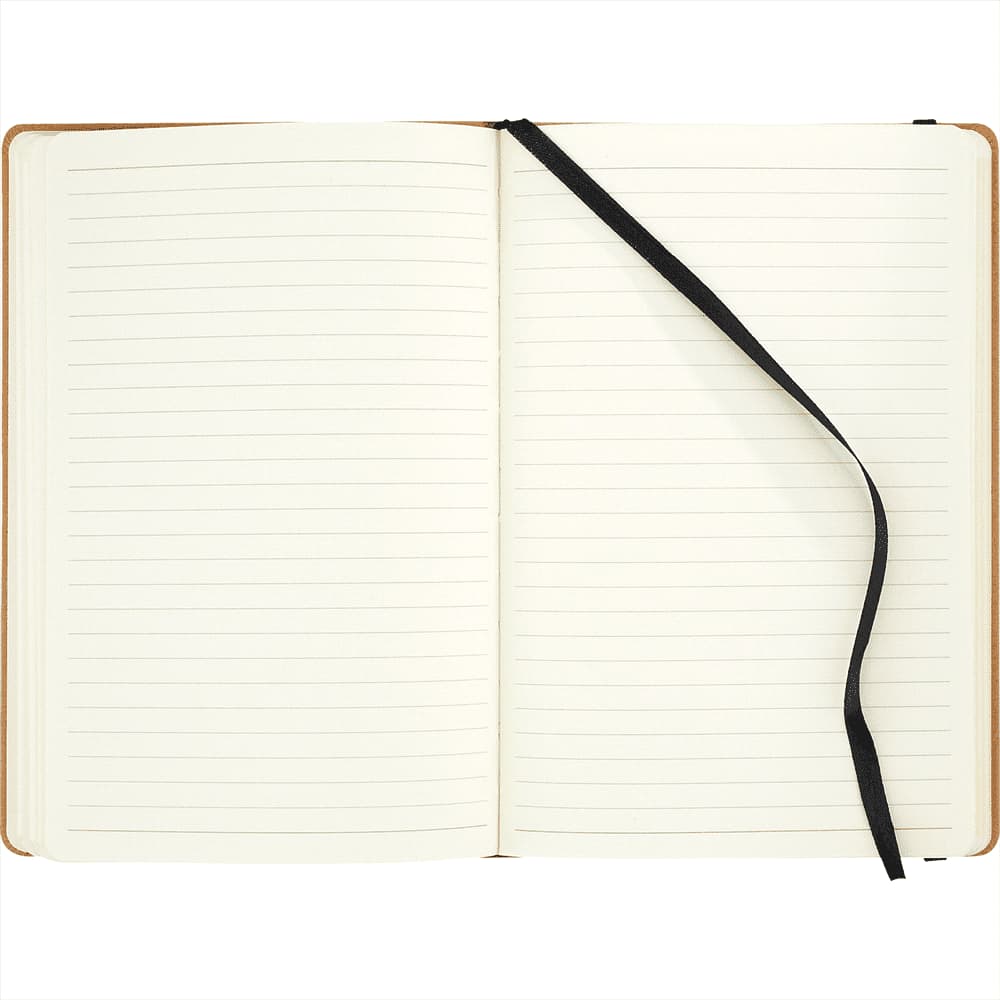 Eco Friendly Journal with recycled inner pages with built-in elastic closure. Ribbon page marker. Expandable accordion pocket.