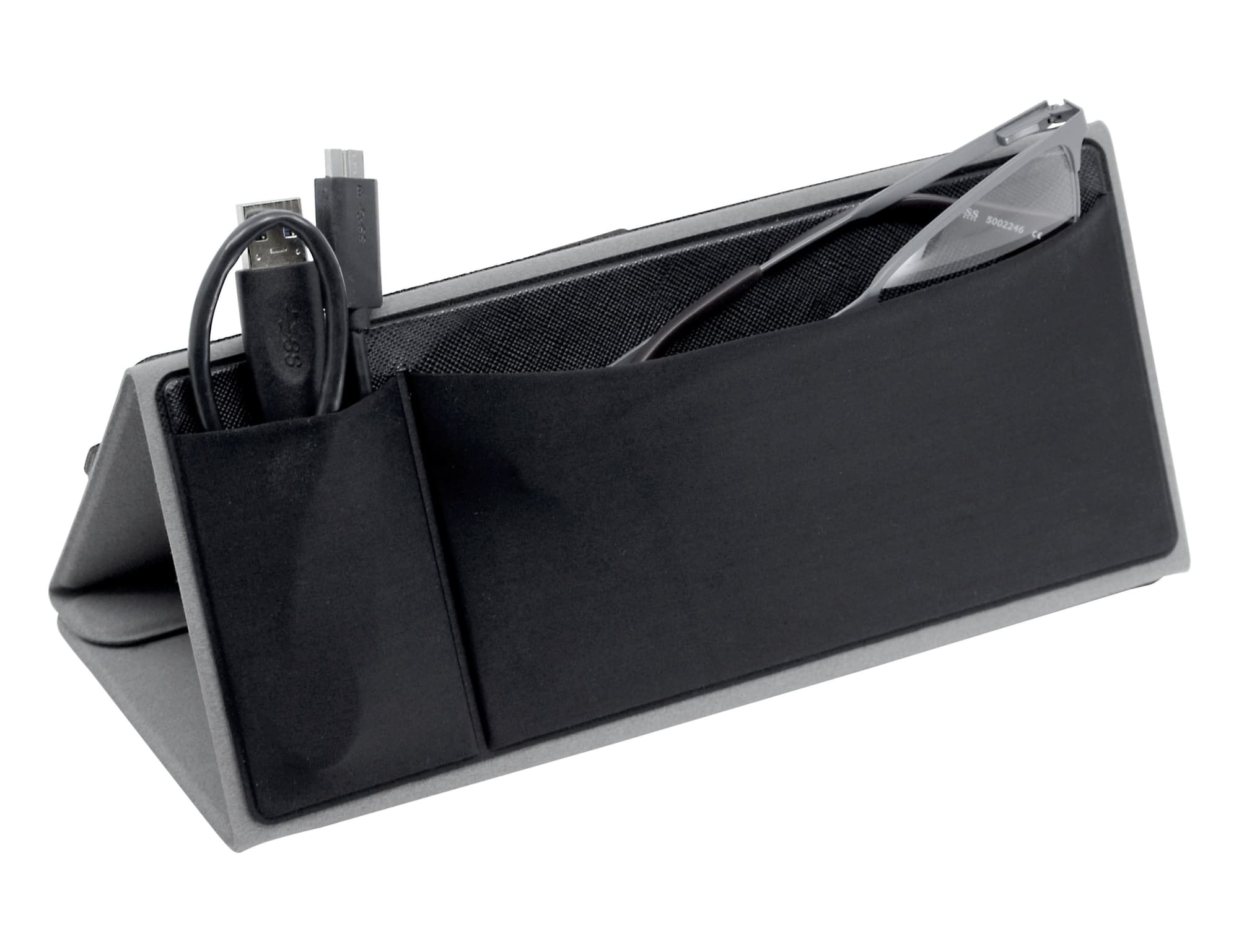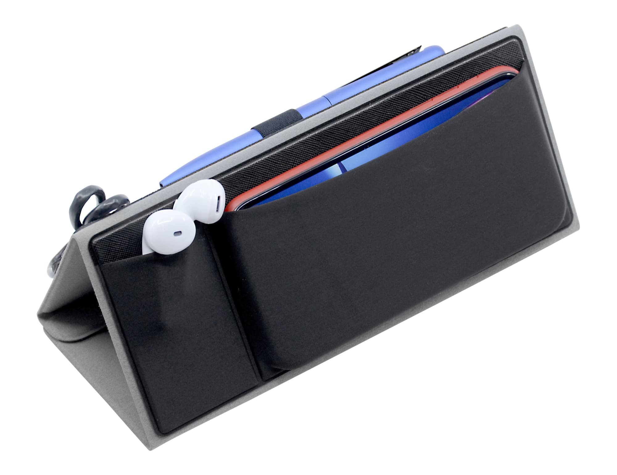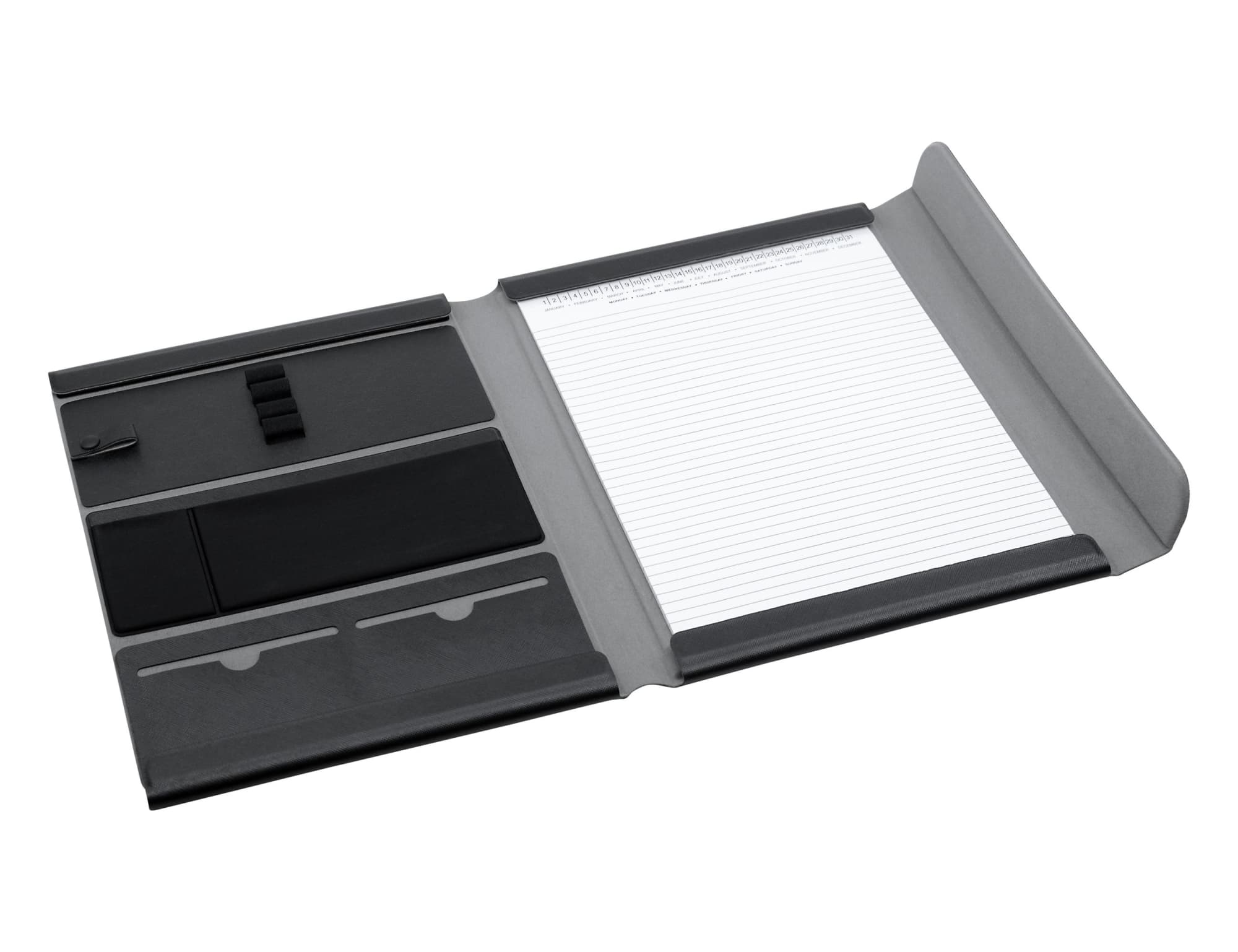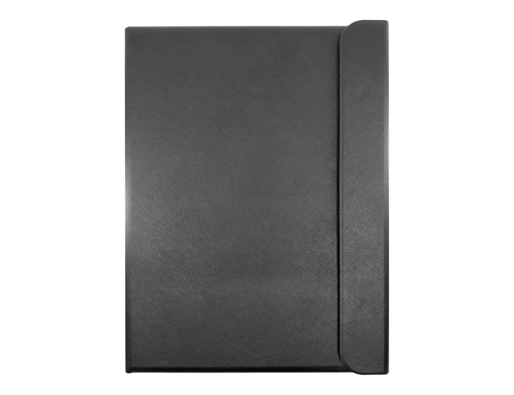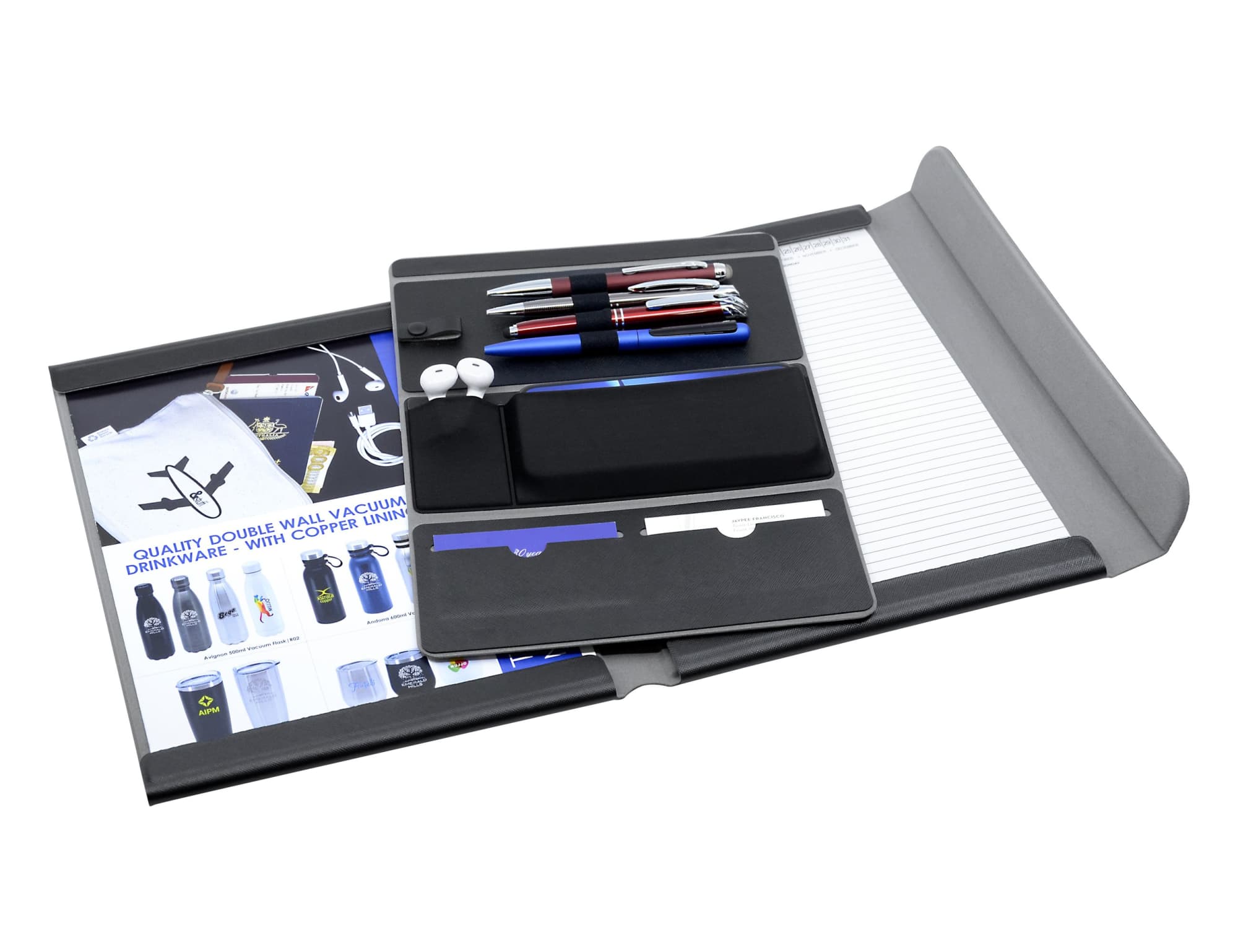 This must-have product combines a quality A4 portfolio with a removable stationary organiser. The organiser is simple to remove from the portfolio and stands on the desk making access to all your stationery and tech a breeze – it’s designed to hold pens, tech cables, ear pods, a mobile phone, USB drives and business cards. This portfolio also features a magnetic A4 document holder, a replaceable A4 notepad and magnetic closure.