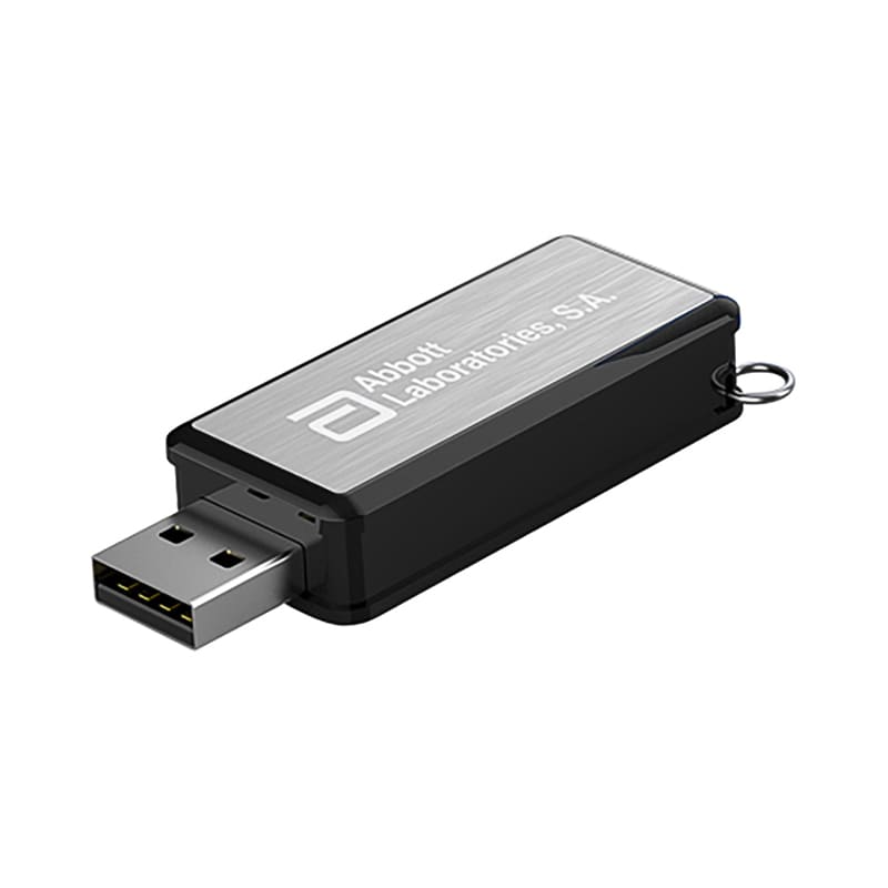 Rotating the aluminium panel exposes the USB from ABS case and includes A Grade memory, micro split-ring, 10 year data retention warranty and a 2 year faulty manufacture replacement warranty. Material: ABS, Aluminium.